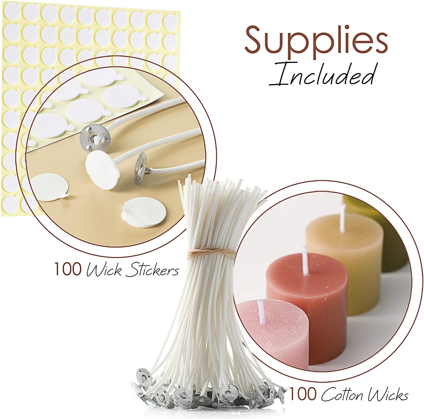 - EVERYTHING YOU NEED: The pack includes 100 Cotton Wicks and 100 round stickers, enough to make 100 DIY candles that look like they were made by a professional.