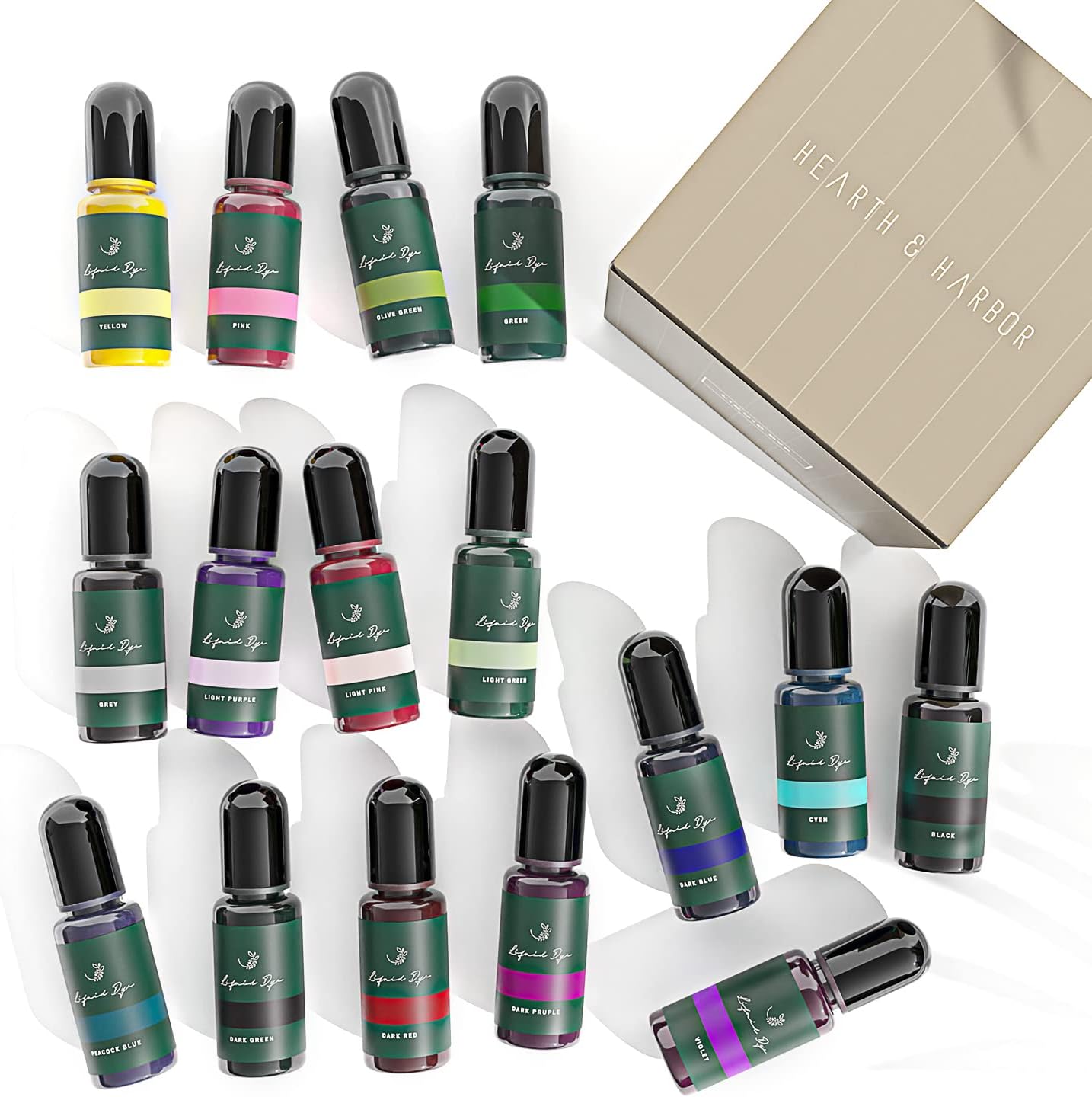 - 16 LIQUID CANDLE DYES: Each Hearth & Harbor candle dye set includes 16 bottles of different color dyes. In this way, you can even make colorful layers and every candle you will make at home will be unique.