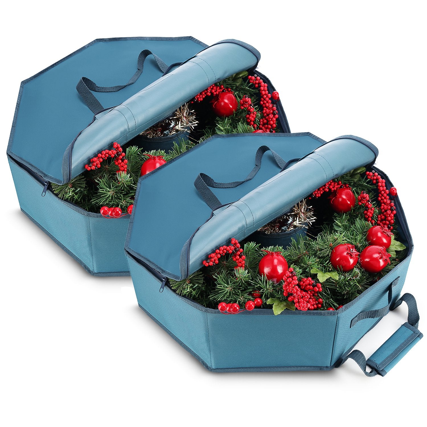 Hearth & Harbor Wreath Storage Bag you can keep your wreath safe and secure from year to year, Our new special design wreath storage container was designed with you in mind! Crafted with extra hard shell walls and durable non-woven material, our wreath storage container can easily compete with any other wreath storage bag out there. Even the bottom comes with a special board to keep the whole box sturdy and strong. Available in 3 Sizes 24" 30" 36" to match your size. Comes with removable interior pockets so you can store your wreath with special unique christmas accessories that you would want to keep together. Dual zippers allow you to easily access the whole inside of the box. reinforced handles allow for easy carrying. Constructed of sturdy non-woven material, it just doesn’t get sturdier than this. Durable enough to withstand constant use without showing wear and tear, this will last you through many happy holidays. Your wreaths will be safe and protected, no dust or grime will get them, and there is no need to fear moisture either.
