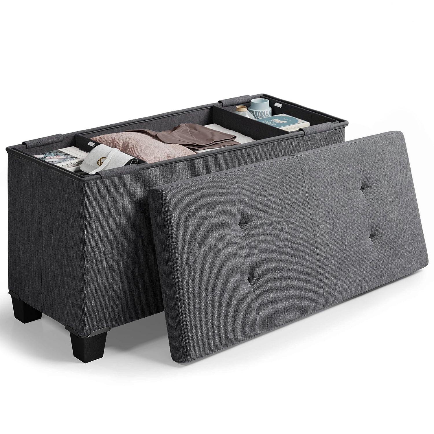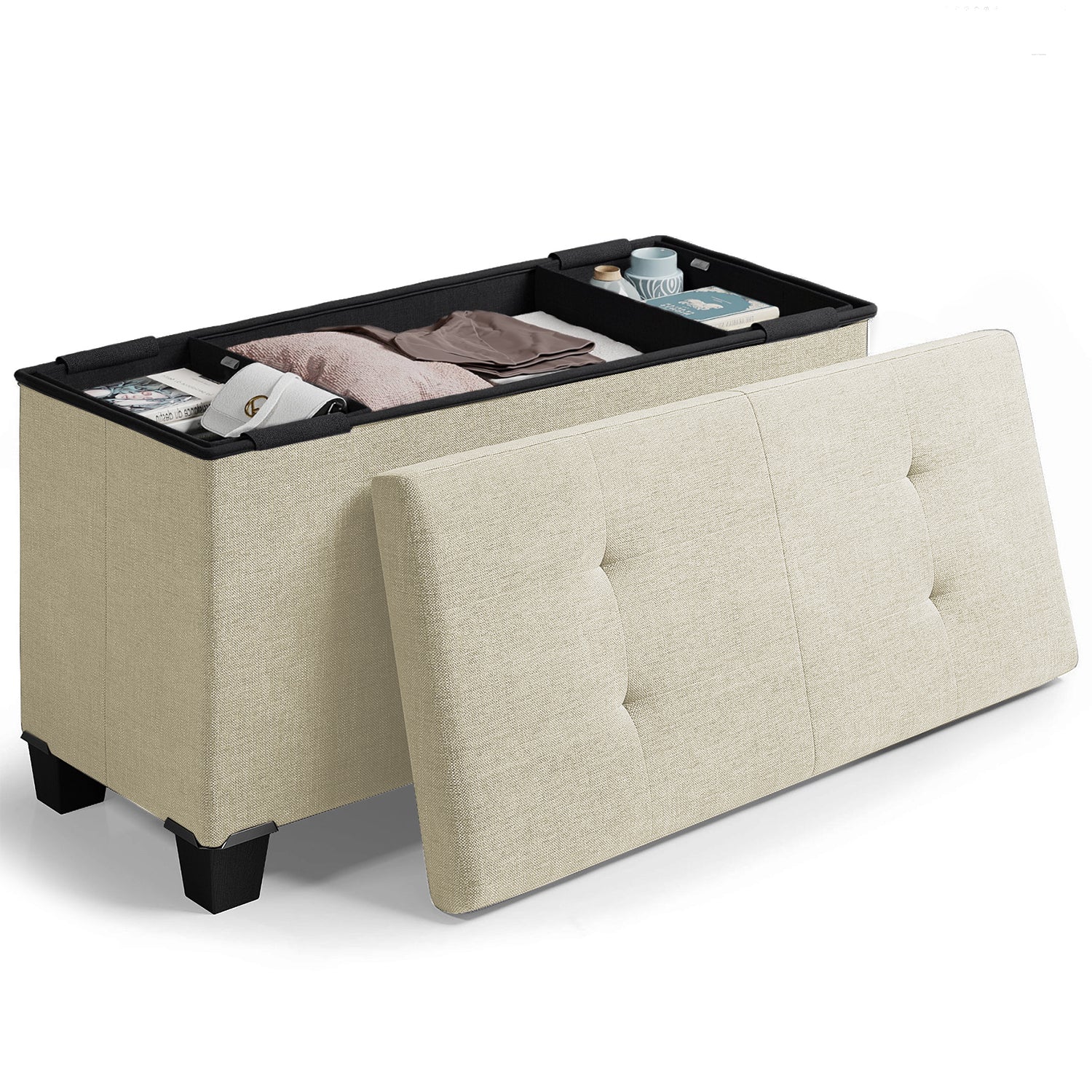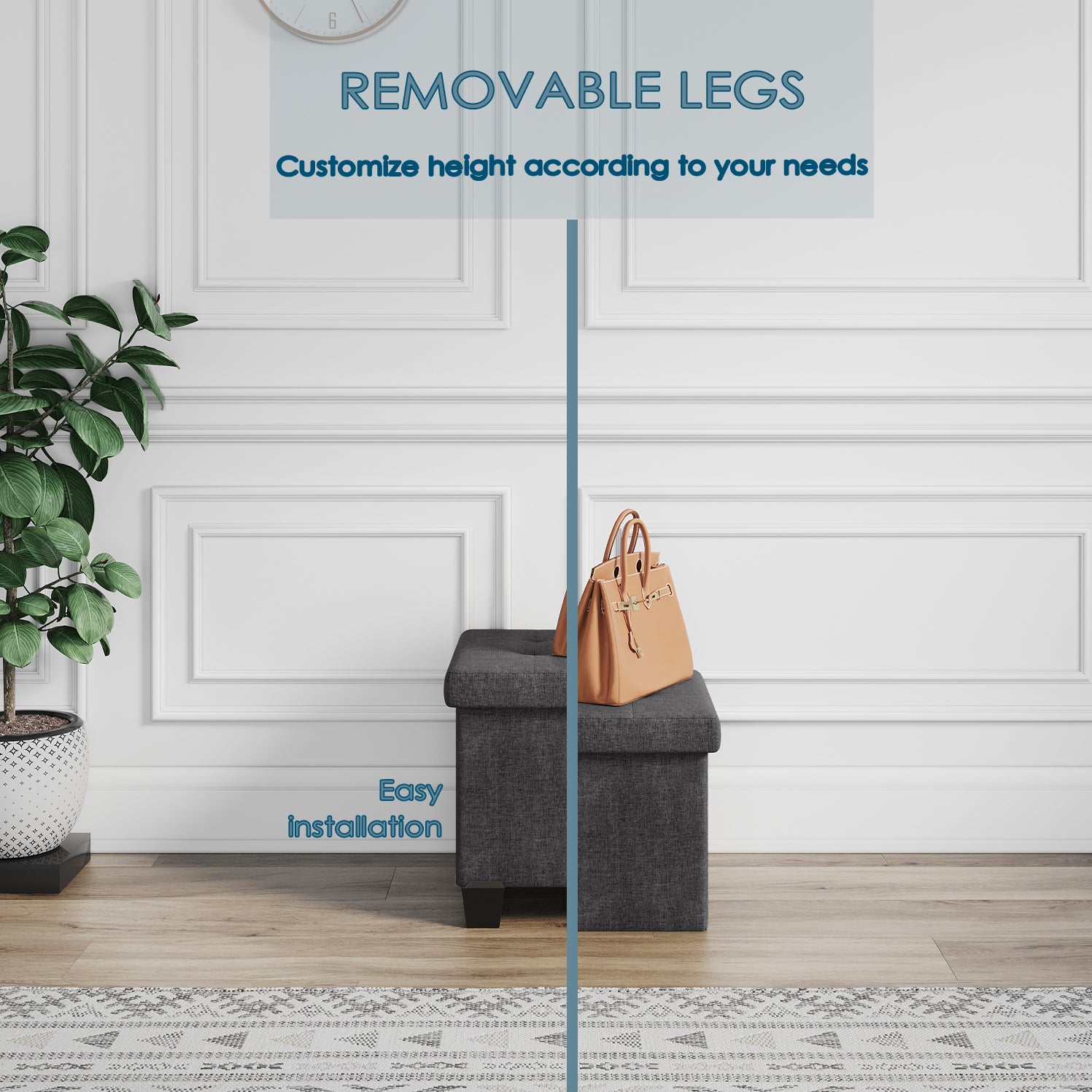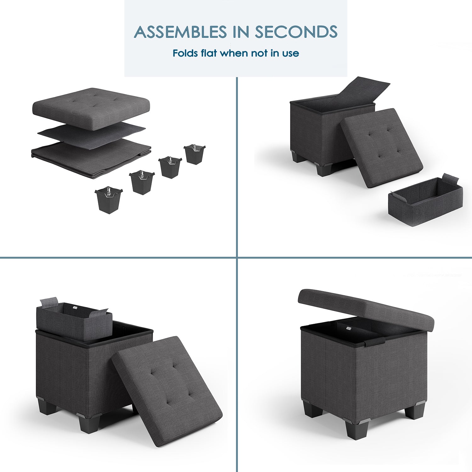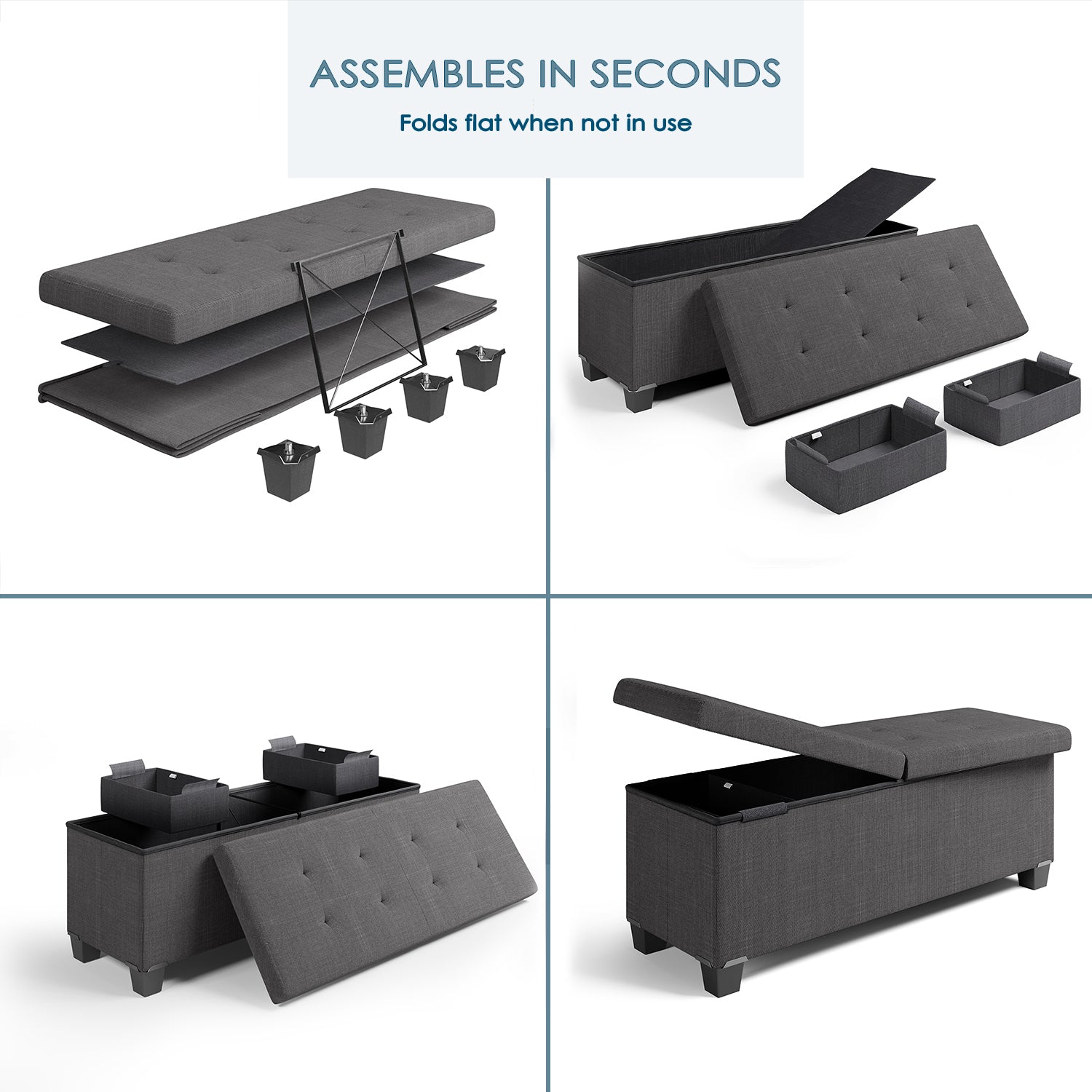 The Nestl tufted storage ottoman bench serves as a coffee table ottoman for living room or fall decor. This ottoman with storage is a perfect choice to help you make the most of your living space by acting as both a storage container and a comfertable ottoman or even a footrest. Our storage ottoman can fold flat when not in use, adapting the ottoman to suit your storage needs and when in need of additional seating. The durable fabric, gray ottoman helps organize essentials and accessories with this multipurpose storage bench. The sturdy, cushioned lid of our ottoman for bedroom storage is comfortable and supportive, with an invisible hinge design that allows it to be bent and lifted up from either side without removing the entire lid. The large ottoman space stores bulkier items like throw blankets and pillows.