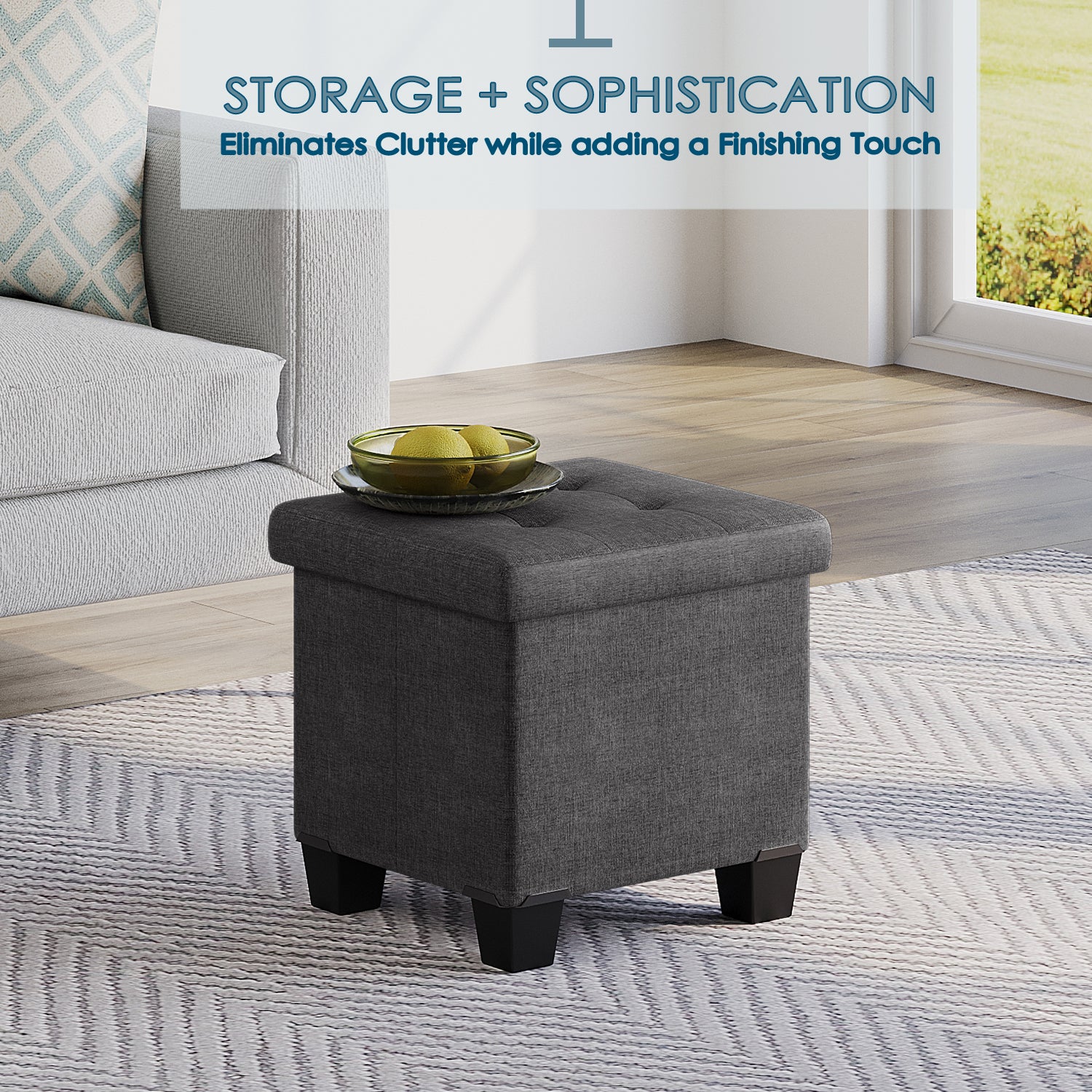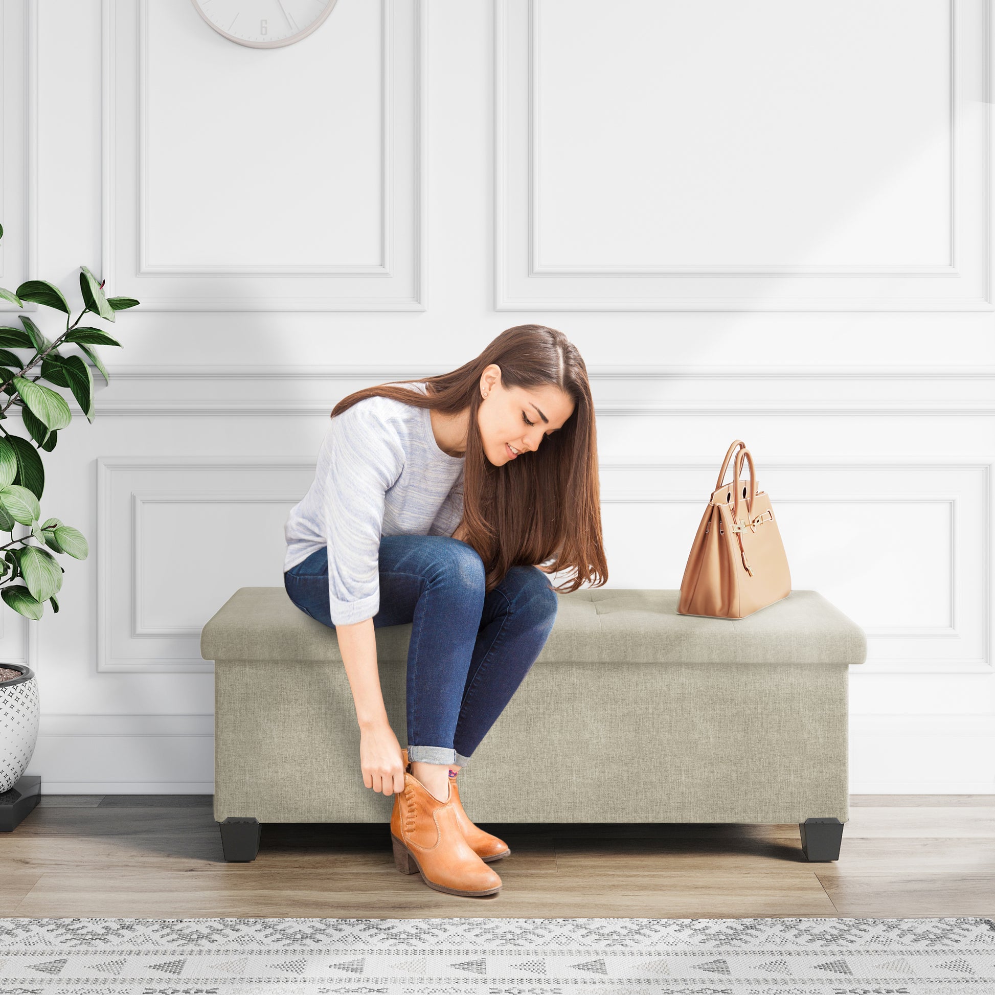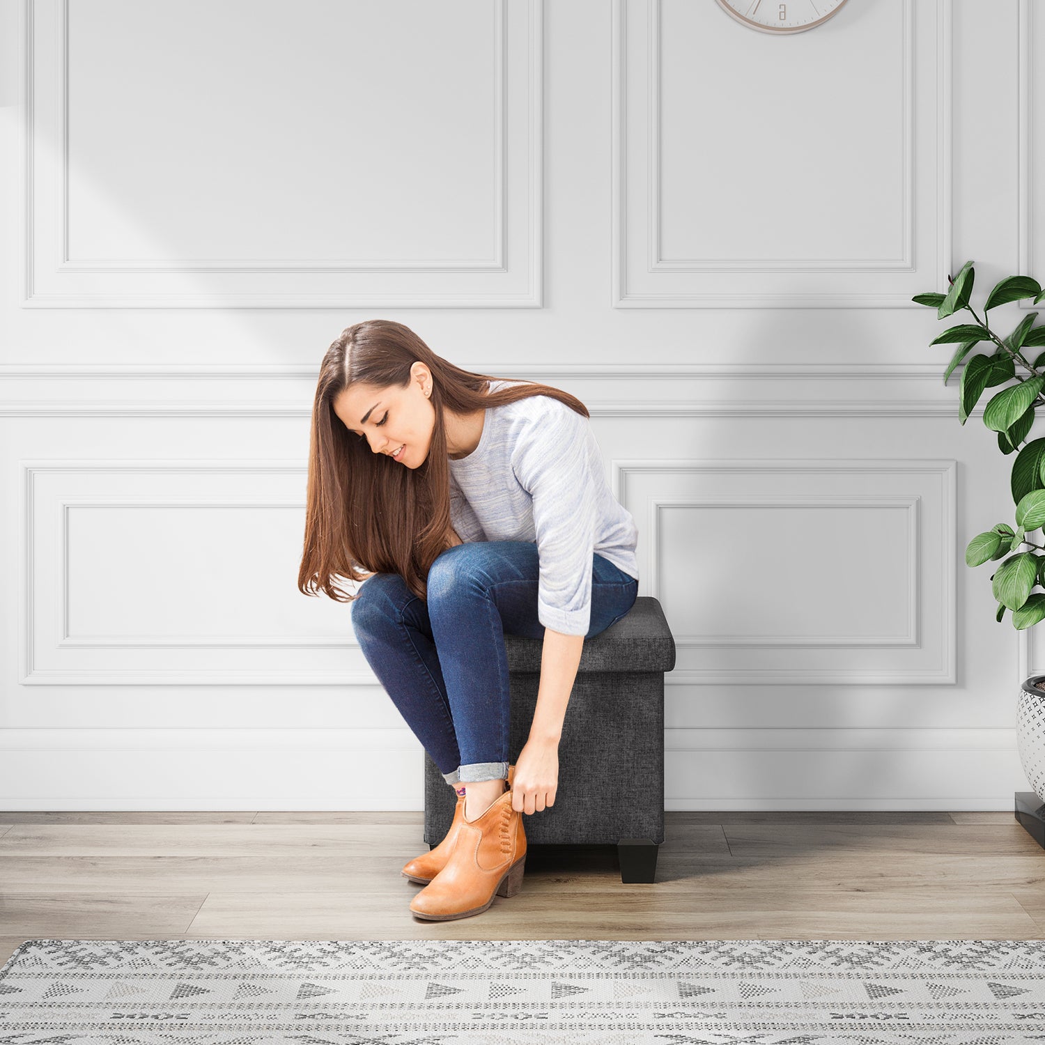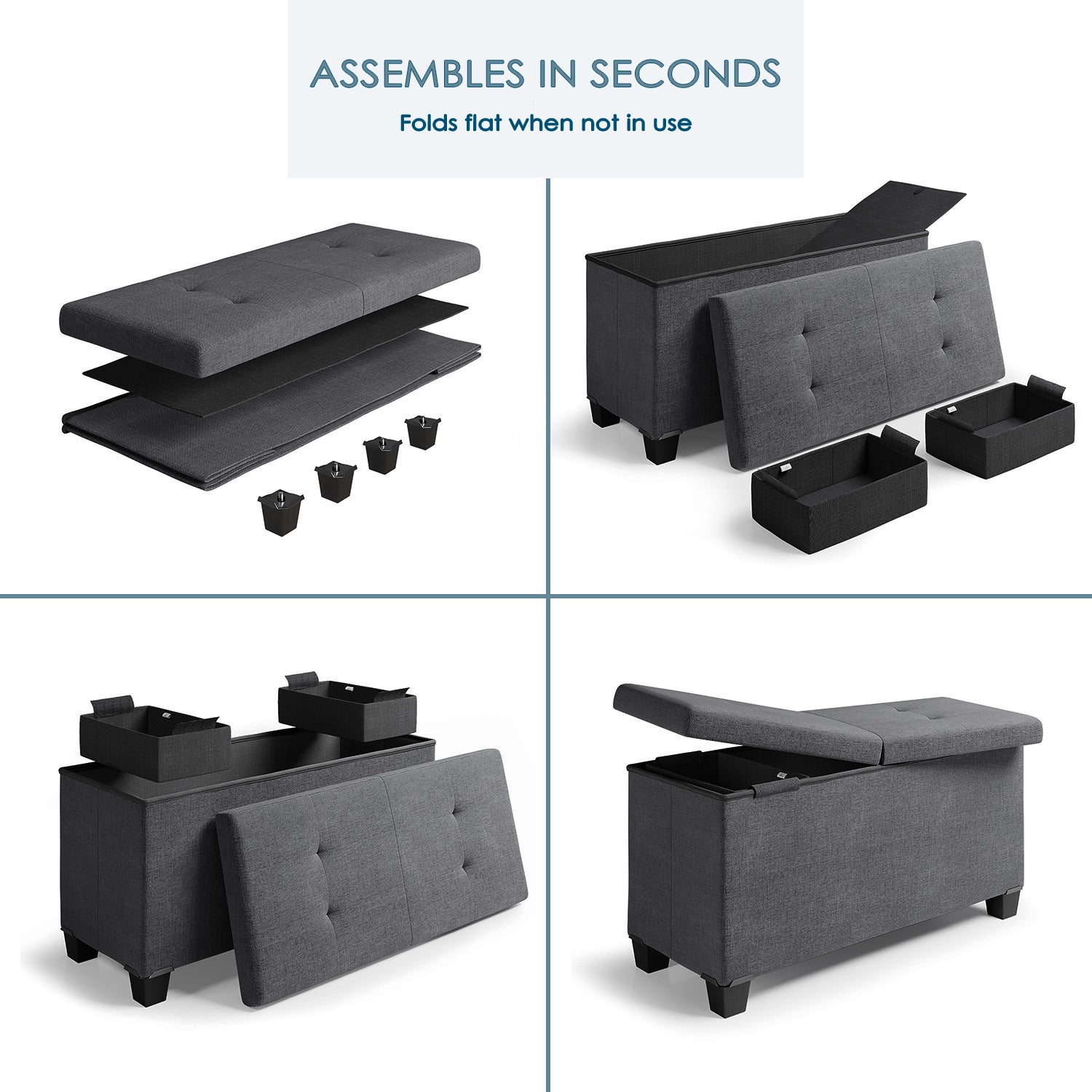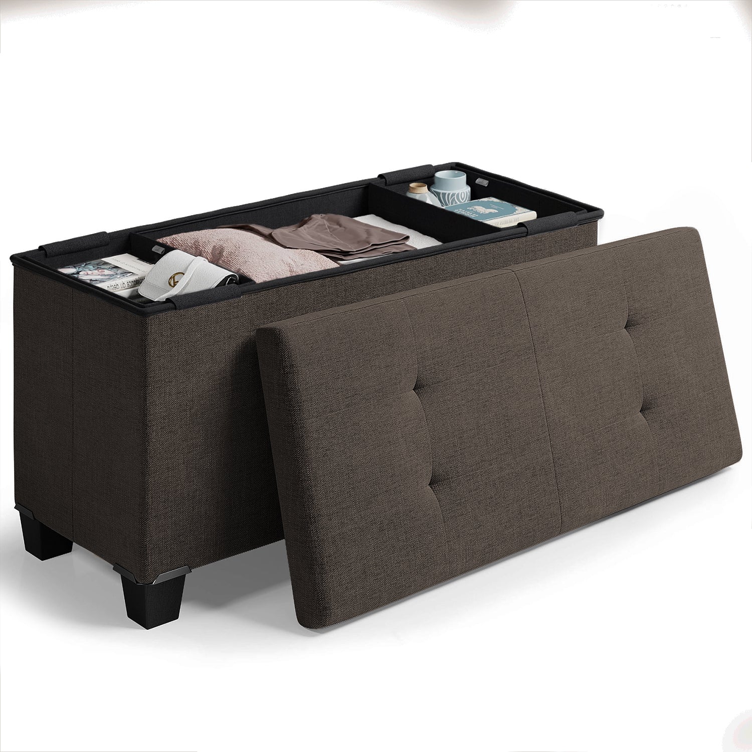 The Nestl tufted storage ottoman bench serves as a coffee table ottoman for living room or fall decor. This ottoman with storage is a perfect choice to help you make the most of your living space by acting as both a storage container and a comfertable ottoman or even a footrest. Our storage ottoman can fold flat when not in use, adapting the ottoman to suit your storage needs and when in need of additional seating. The durable fabric, gray ottoman helps organize essentials and accessories with this multipurpose storage bench. The sturdy, cushioned lid of our ottoman for bedroom storage is comfortable and supportive, with an invisible hinge design that allows it to be bent and lifted up from either side without removing the entire lid. The large ottoman space stores bulkier items like throw blankets and pillows.