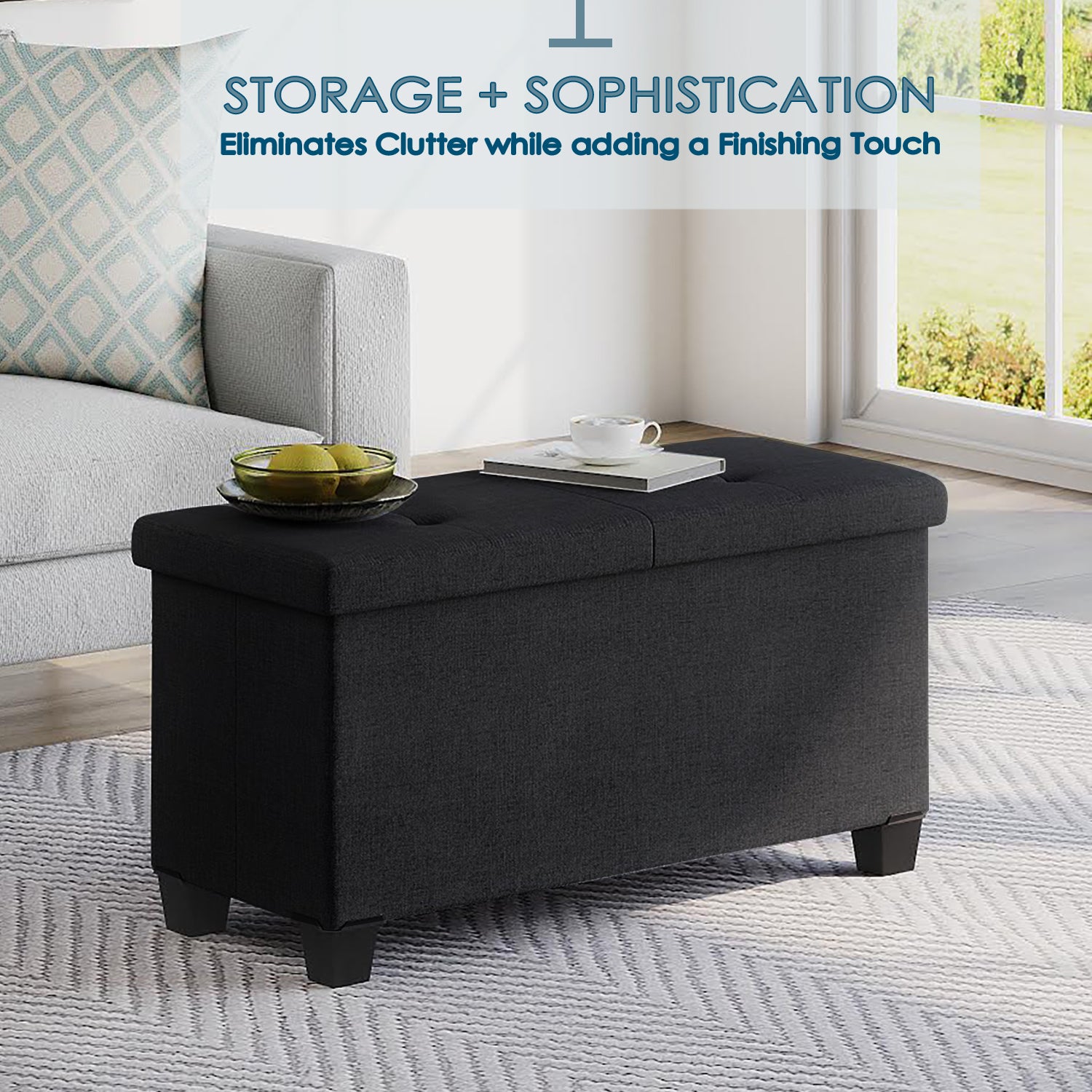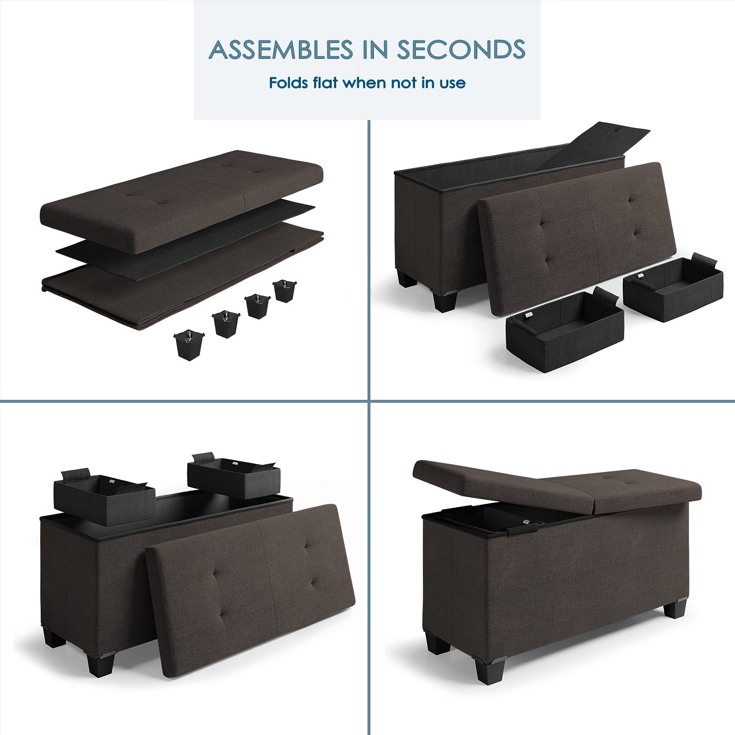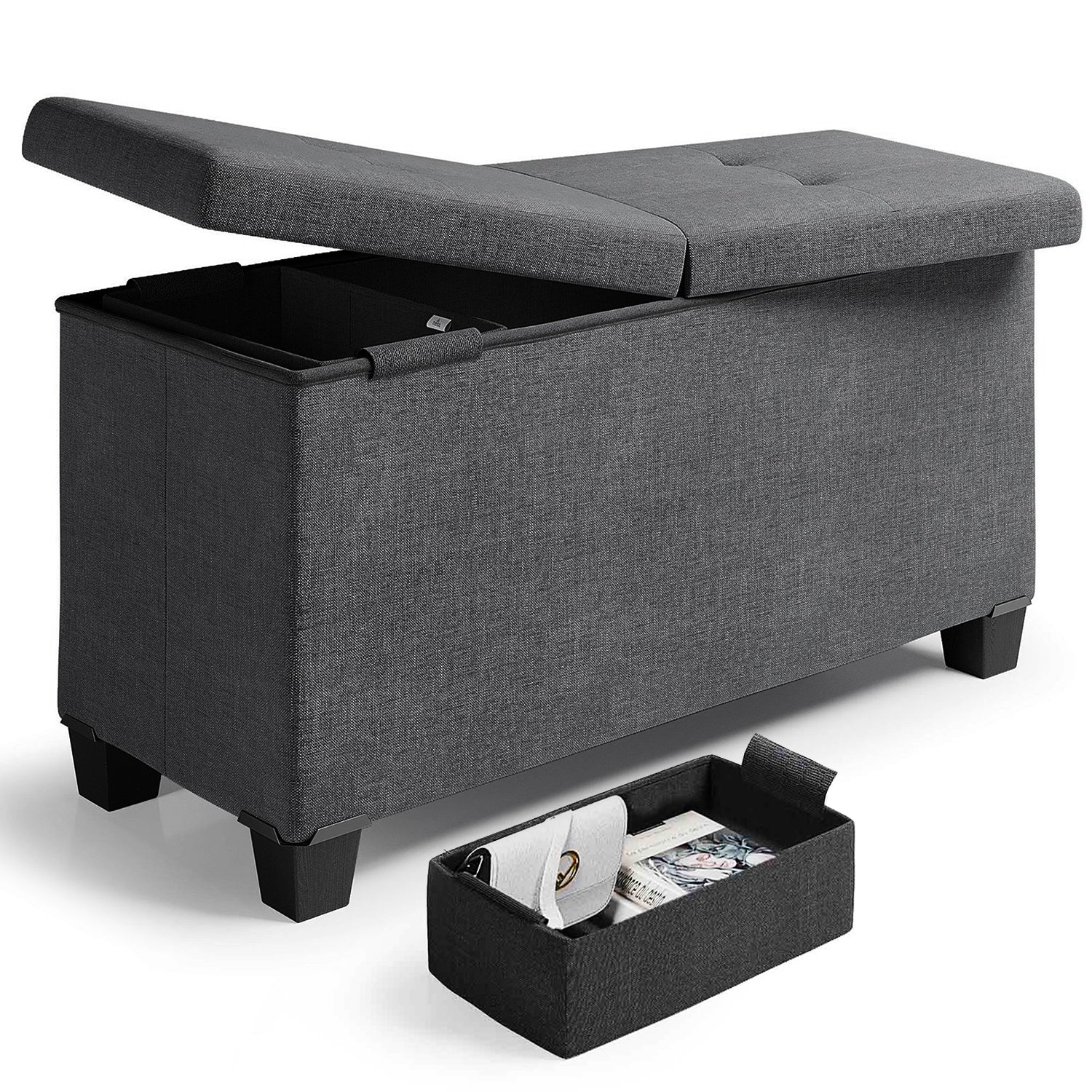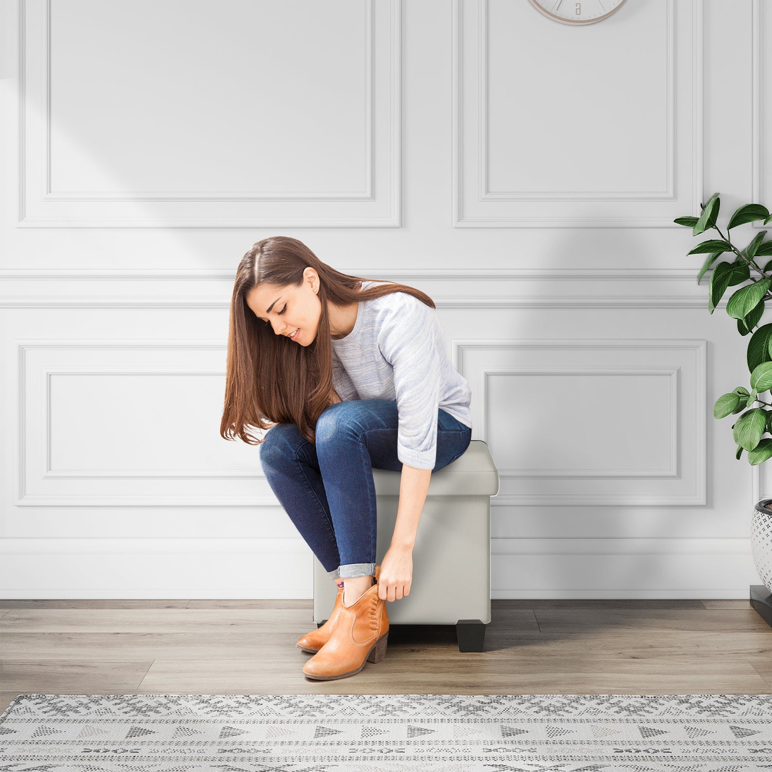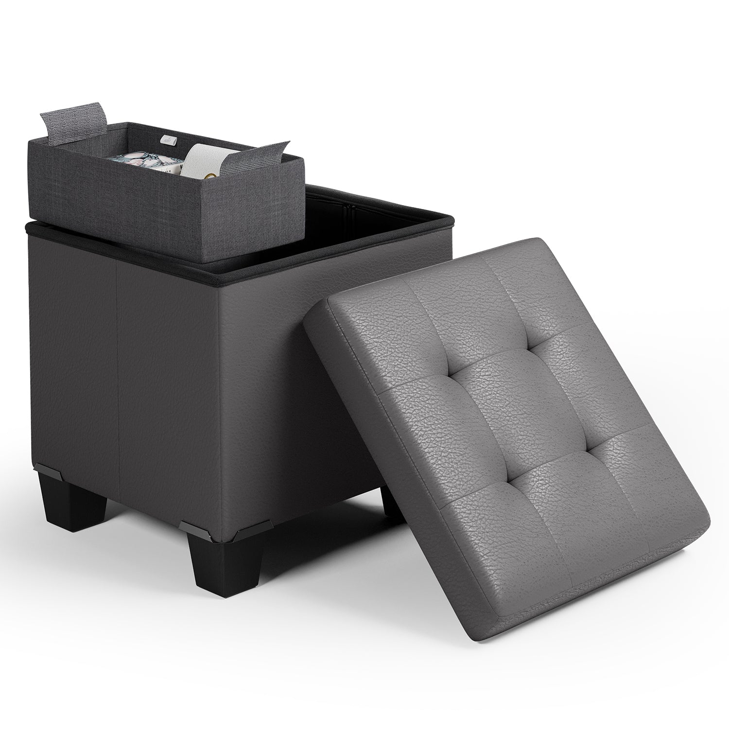 The Nestl tufted storage ottoman bench serves as a coffee table ottoman for living room or fall decor. This ottoman with storage is a perfect choice to help you make the most of your living space by acting as both a storage container and a comfertable ottoman or even a footrest. Our storage ottoman can fold flat when not in use, adapting the ottoman to suit your storage needs and when in need of additional seating. The durable fabric, gray ottoman helps organize essentials and accessories with this multipurpose storage bench. The sturdy, cushioned lid of our ottoman for bedroom storage is comfortable and supportive, with an invisible hinge design that allows it to be bent and lifted up from either side without removing the entire lid. The large ottoman space stores bulkier items like throw blankets and pillows.