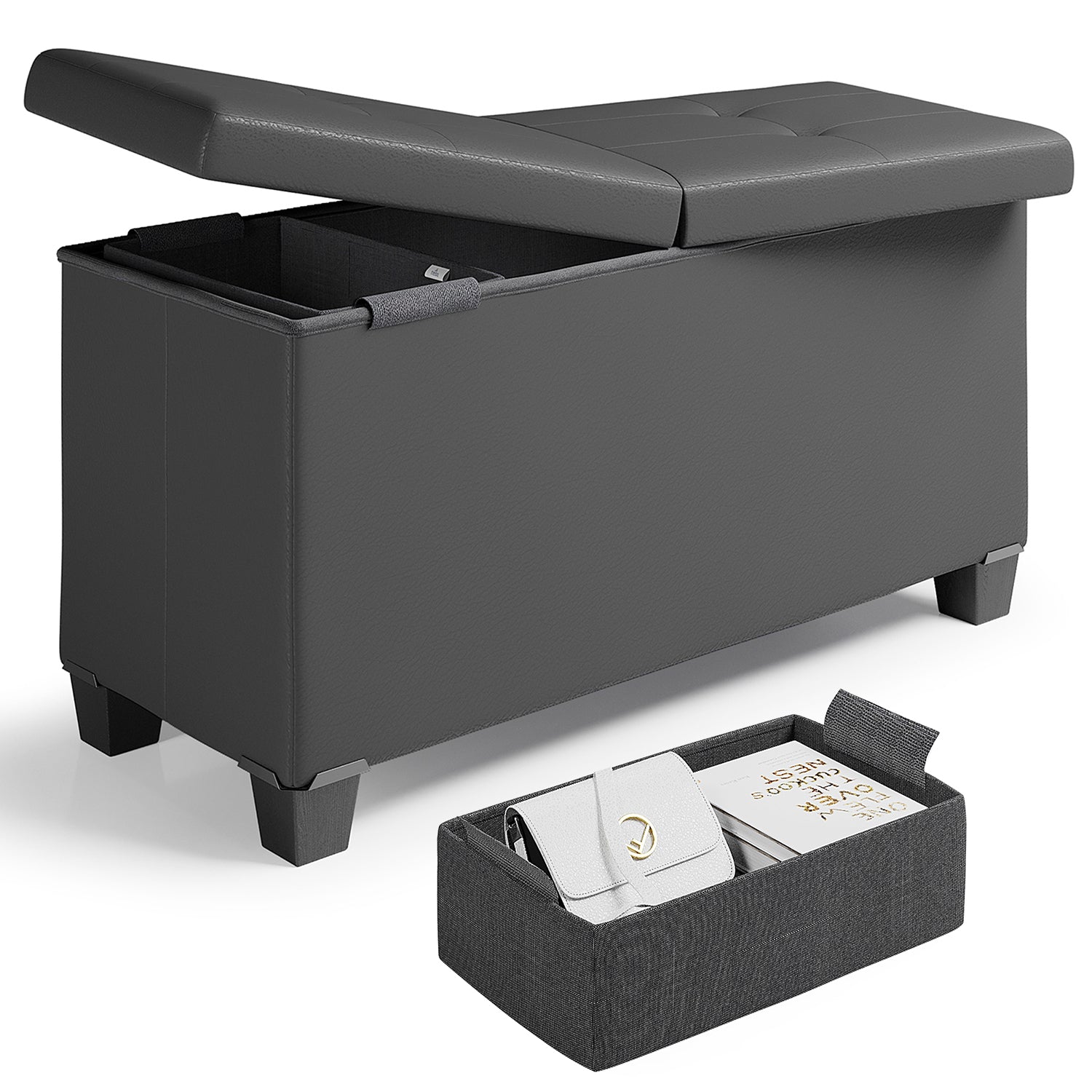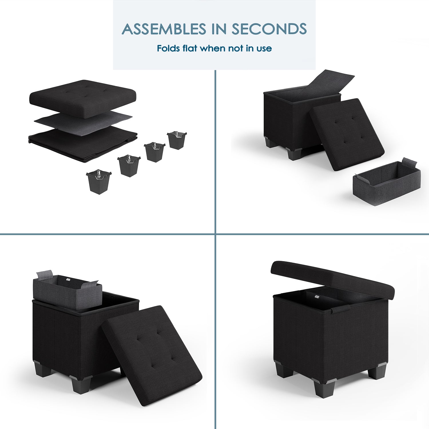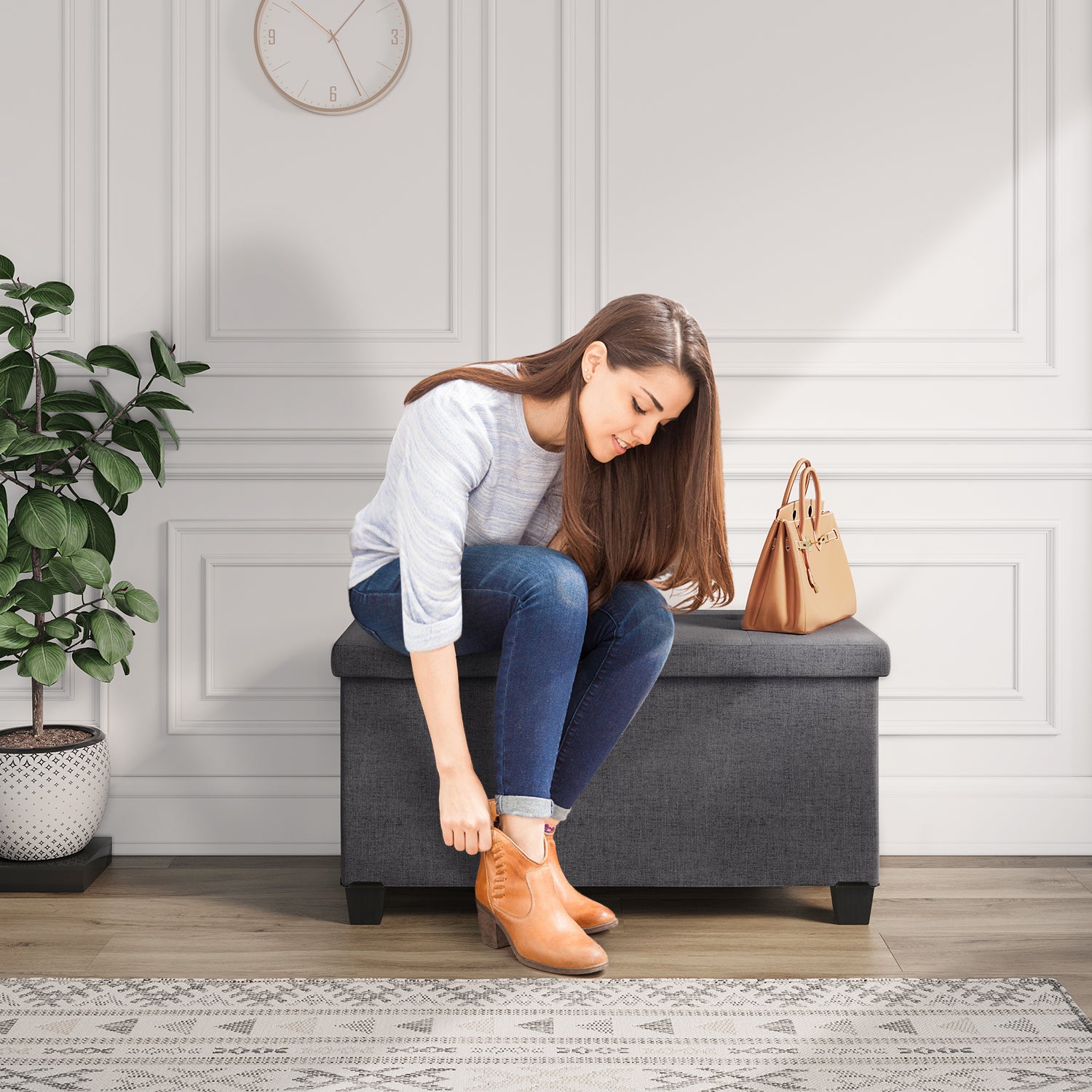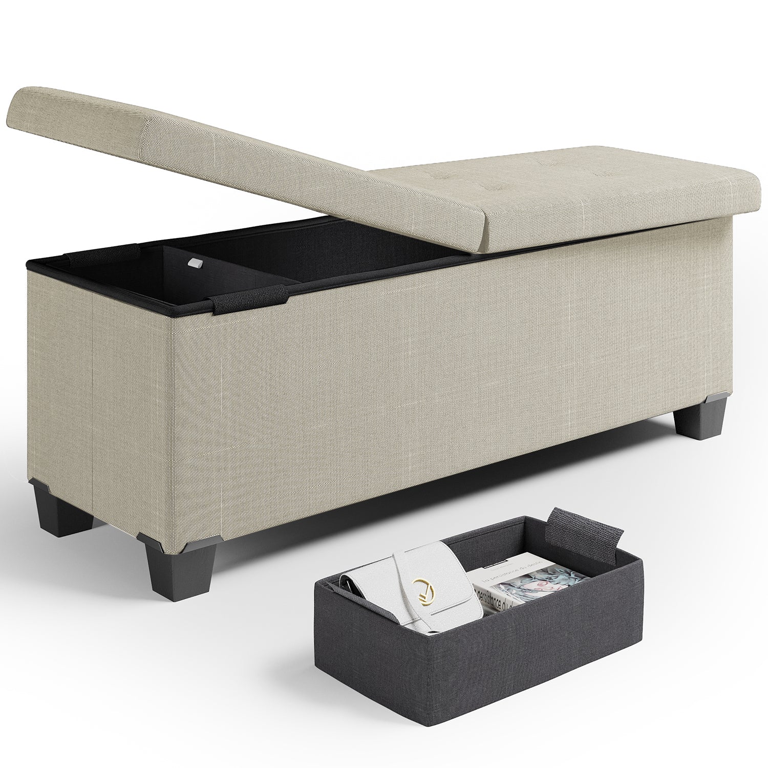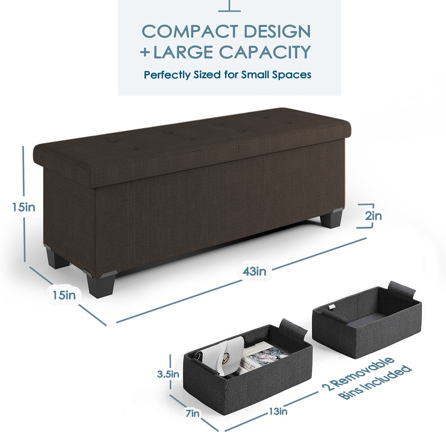 The Nestl tufted storage ottoman bench serves as a coffee table ottoman for living room or fall decor. This ottoman with storage is a perfect choice to help you make the most of your living space by acting as both a storage container and a comfertable ottoman or even a footrest. Our storage ottoman can fold flat when not in use, adapting the ottoman to suit your storage needs and when in need of additional seating. The durable fabric, gray ottoman helps organize essentials and accessories with this multipurpose storage bench. The sturdy, cushioned lid of our ottoman for bedroom storage is comfortable and supportive, with an invisible hinge design that allows it to be bent and lifted up from either side without removing the entire lid. The large ottoman space stores bulkier items like throw blankets and pillows.