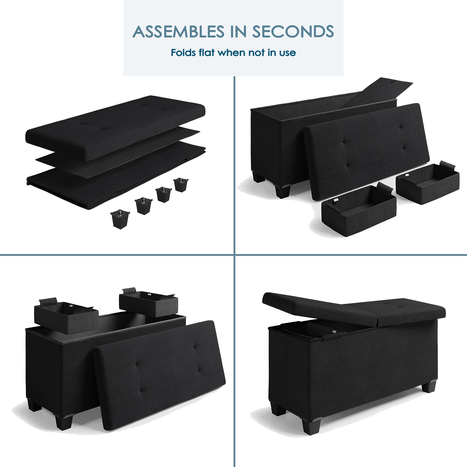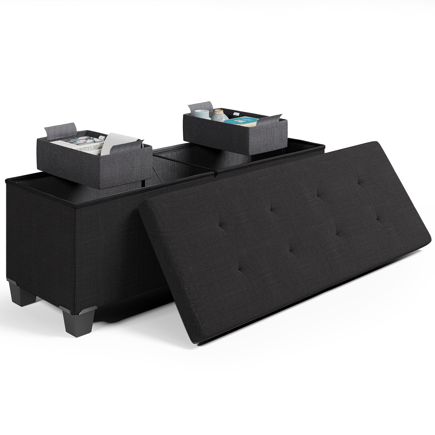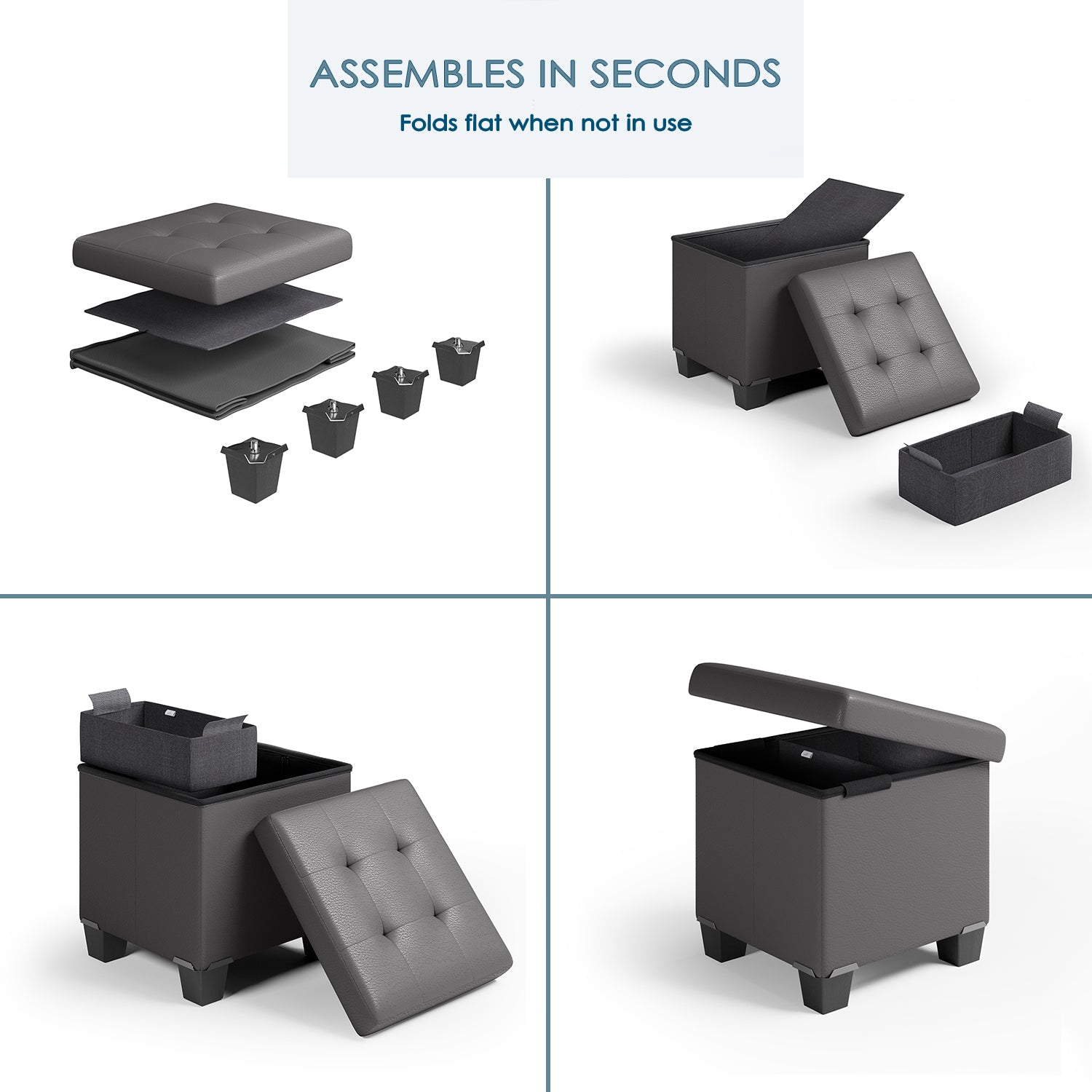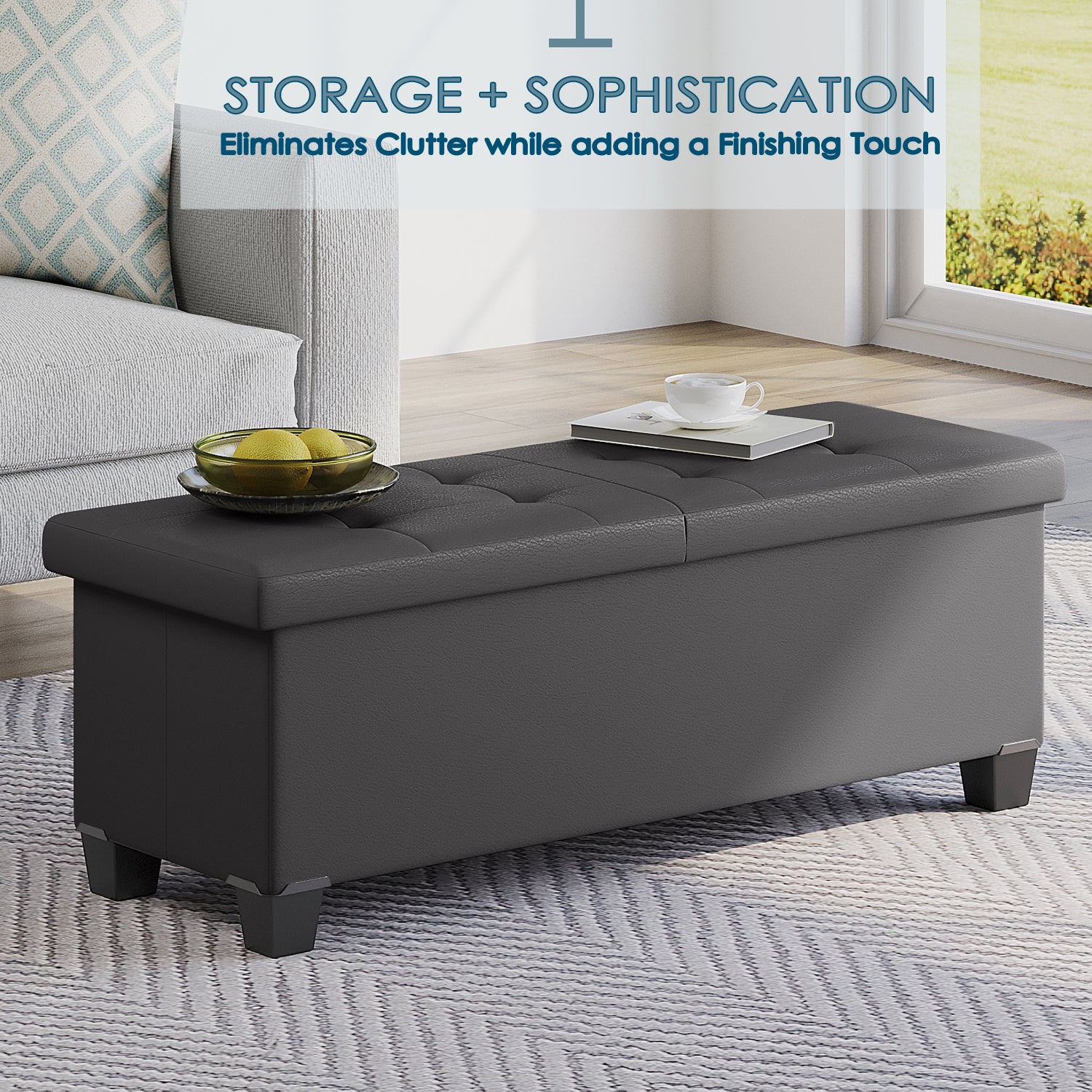 The Nestl tufted storage ottoman bench serves as a coffee table ottoman for living room or fall decor. This ottoman with storage is a perfect choice to help you make the most of your living space by acting as both a storage container and a comfertable ottoman or even a footrest. Our storage ottoman can fold flat when not in use, adapting the ottoman to suit your storage needs and when in need of additional seating. The durable fabric, gray ottoman helps organize essentials and accessories with this multipurpose storage bench. The sturdy, cushioned lid of our ottoman for bedroom storage is comfortable and supportive, with an invisible hinge design that allows it to be bent and lifted up from either side without removing the entire lid. The large ottoman space stores bulkier items like throw blankets and pillows.