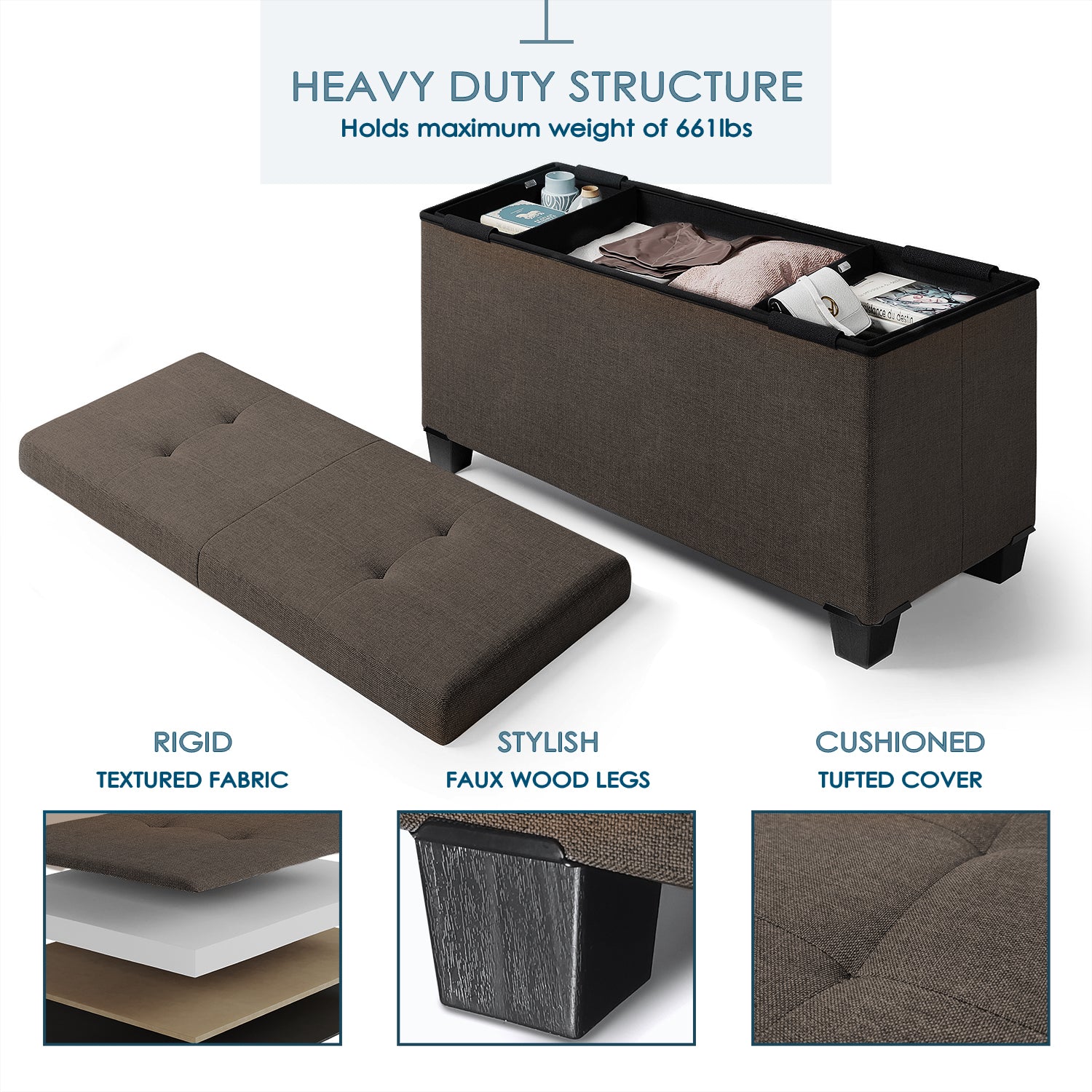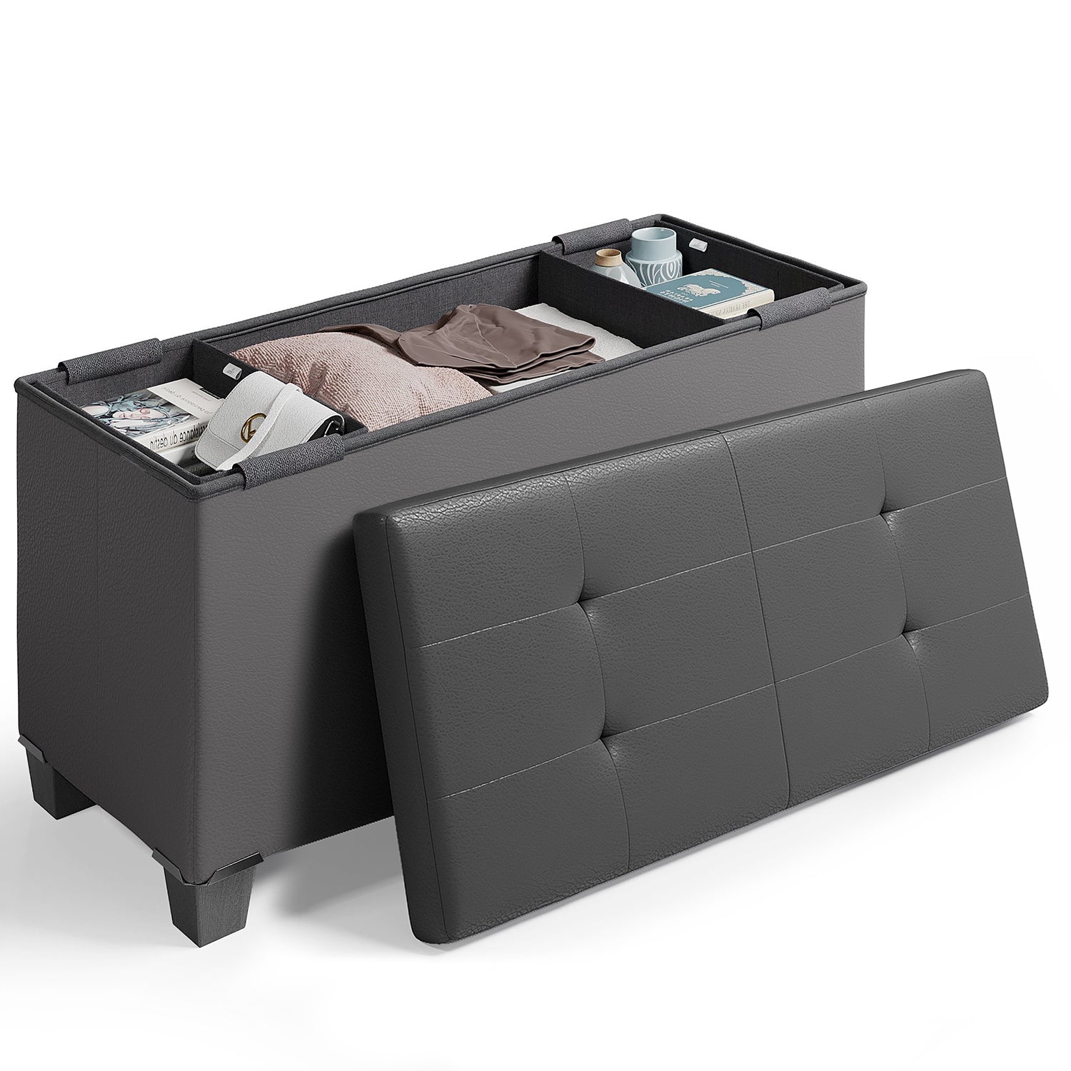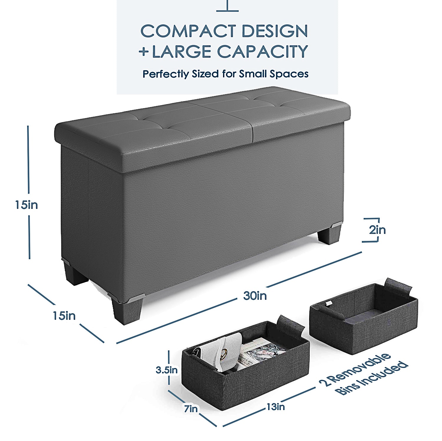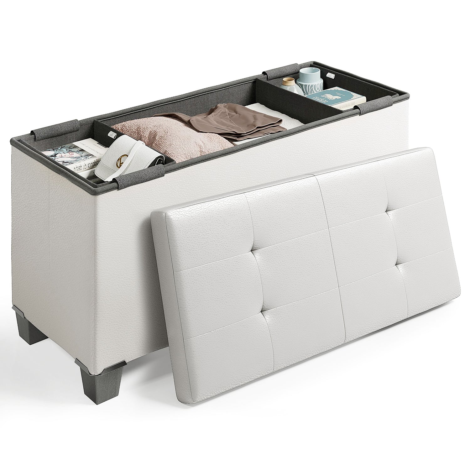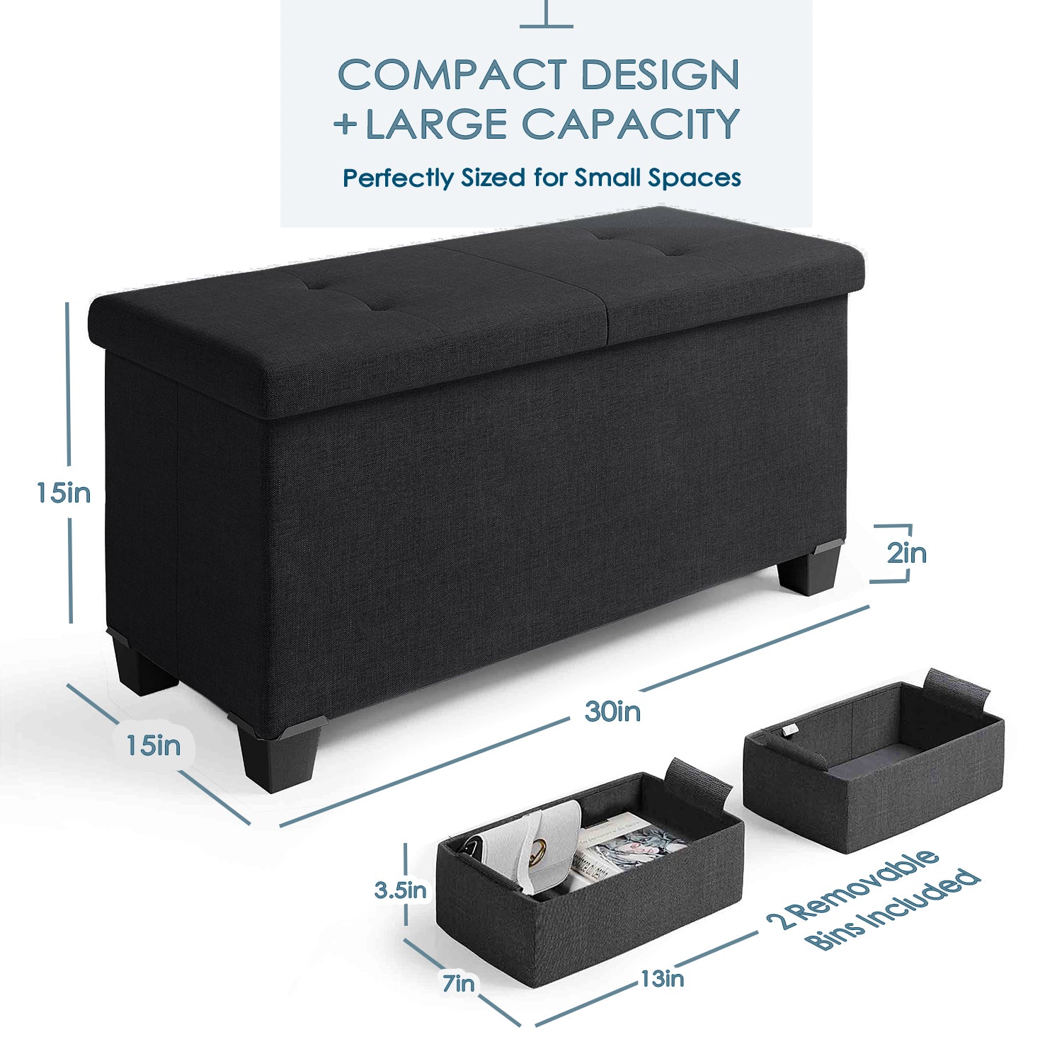 The Nestl tufted storage ottoman bench serves as a coffee table ottoman for living room or fall decor. This ottoman with storage is a perfect choice to help you make the most of your living space by acting as both a storage container and a comfertable ottoman or even a footrest. Our storage ottoman can fold flat when not in use, adapting the ottoman to suit your storage needs and when in need of additional seating. The durable fabric, gray ottoman helps organize essentials and accessories with this multipurpose storage bench. The sturdy, cushioned lid of our ottoman for bedroom storage is comfortable and supportive, with an invisible hinge design that allows it to be bent and lifted up from either side without removing the entire lid. The large ottoman space stores bulkier items like throw blankets and pillows.