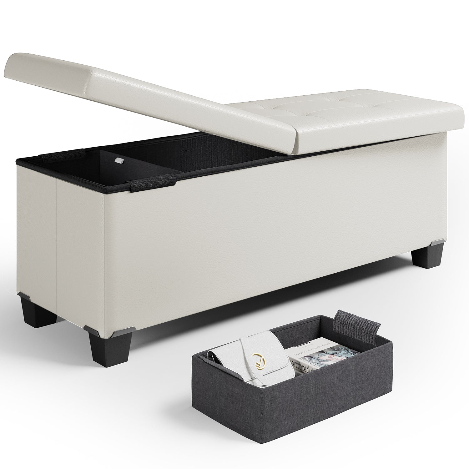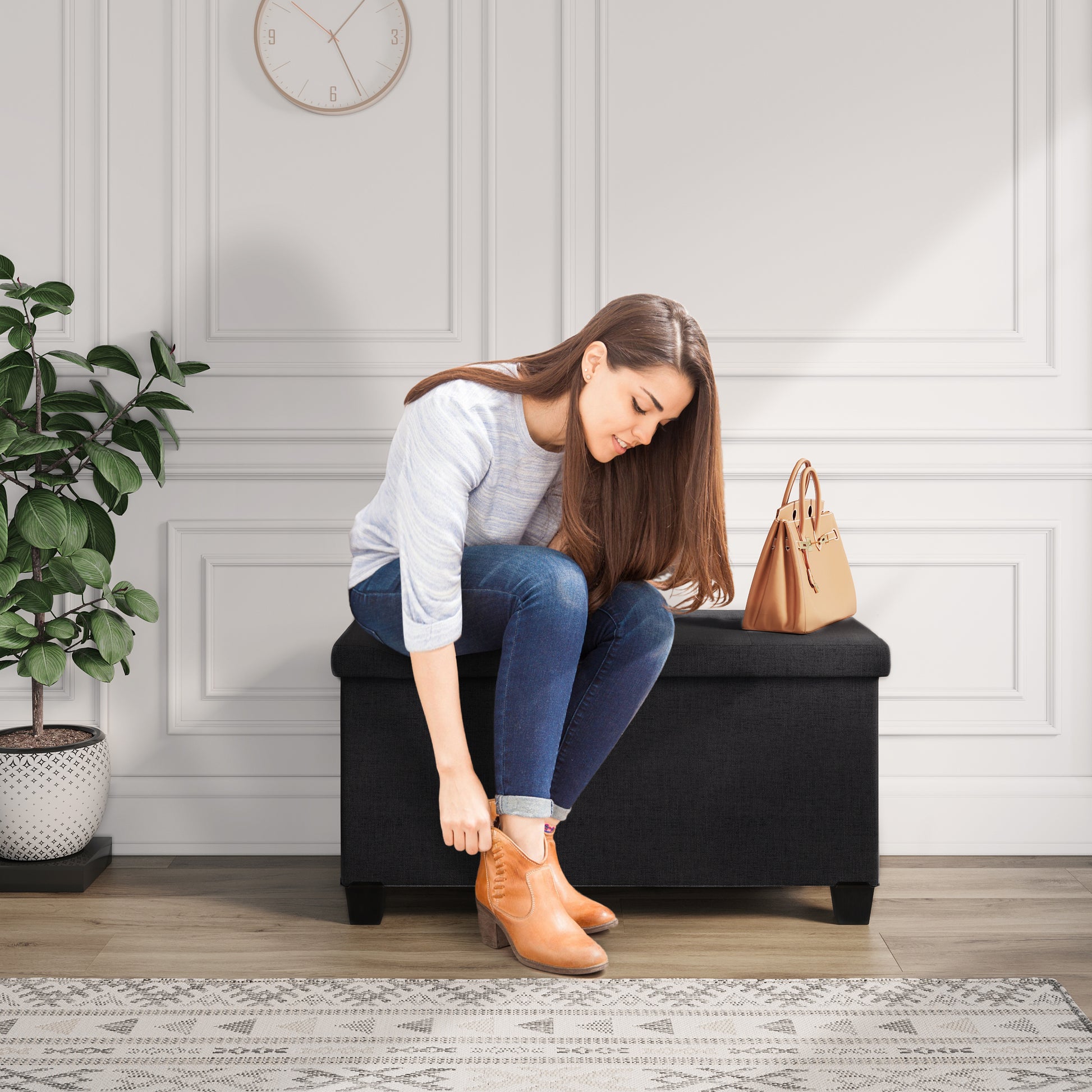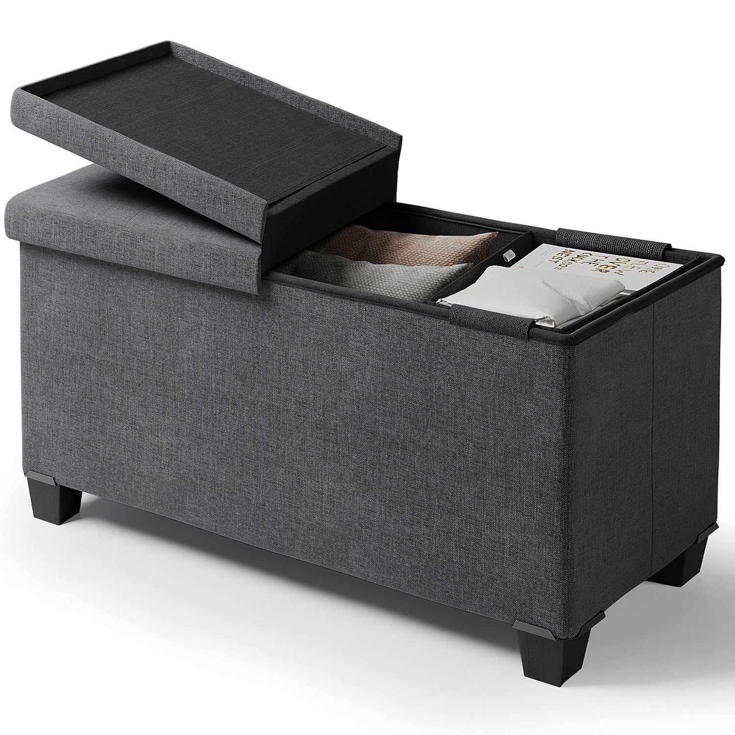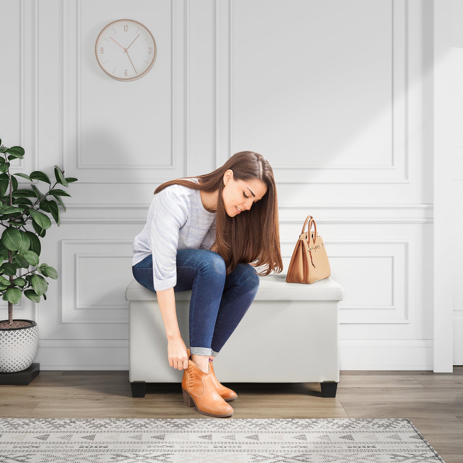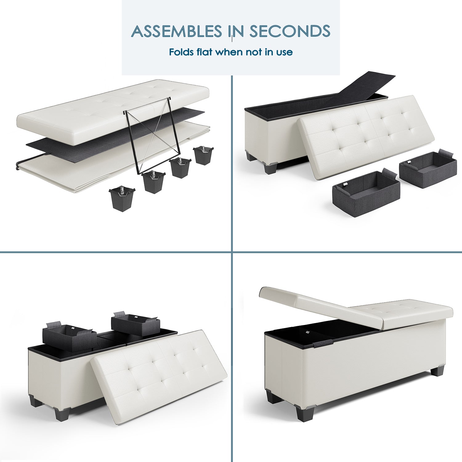 The Nestl tufted storage ottoman bench serves as a coffee table ottoman for living room or fall decor. This ottoman with storage is a perfect choice to help you make the most of your living space by acting as both a storage container and a comfertable ottoman or even a footrest. Our storage ottoman can fold flat when not in use, adapting the ottoman to suit your storage needs and when in need of additional seating. The durable fabric, gray ottoman helps organize essentials and accessories with this multipurpose storage bench. The sturdy, cushioned lid of our ottoman for bedroom storage is comfortable and supportive, with an invisible hinge design that allows it to be bent and lifted up from either side without removing the entire lid. The large ottoman space stores bulkier items like throw blankets and pillows.