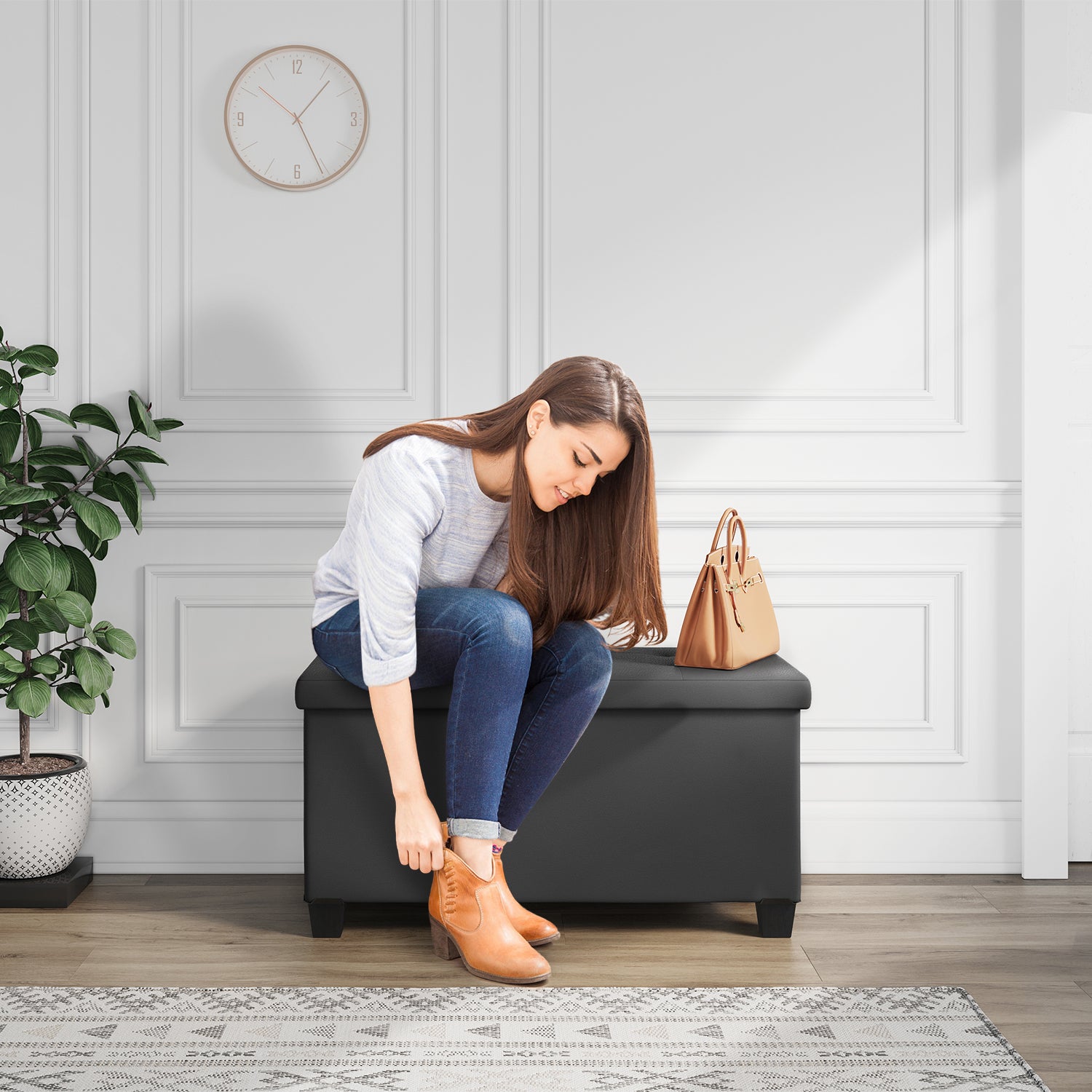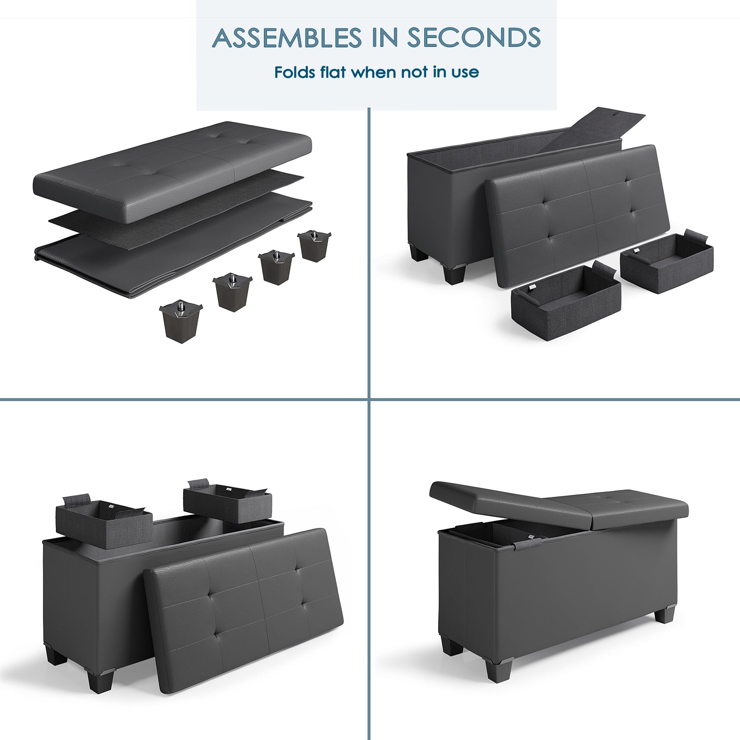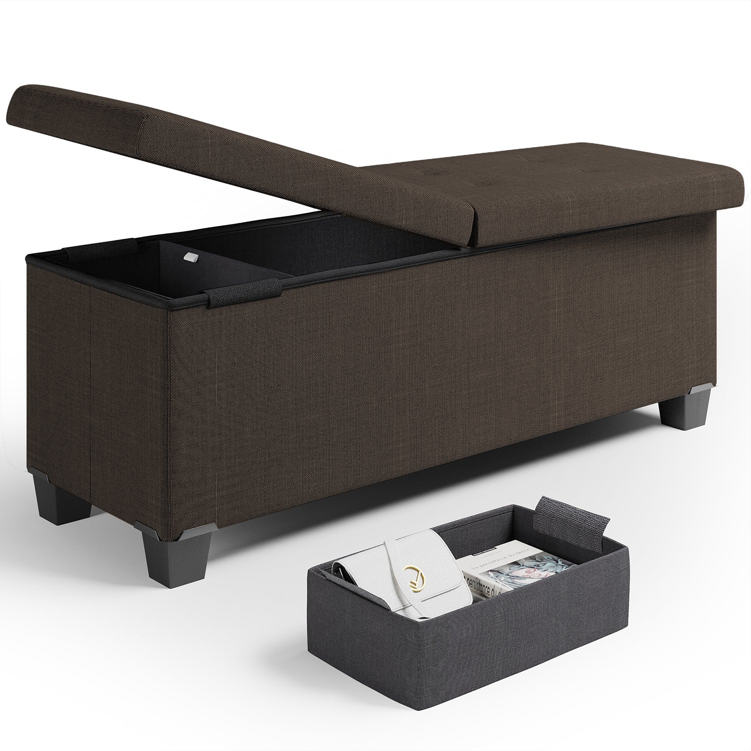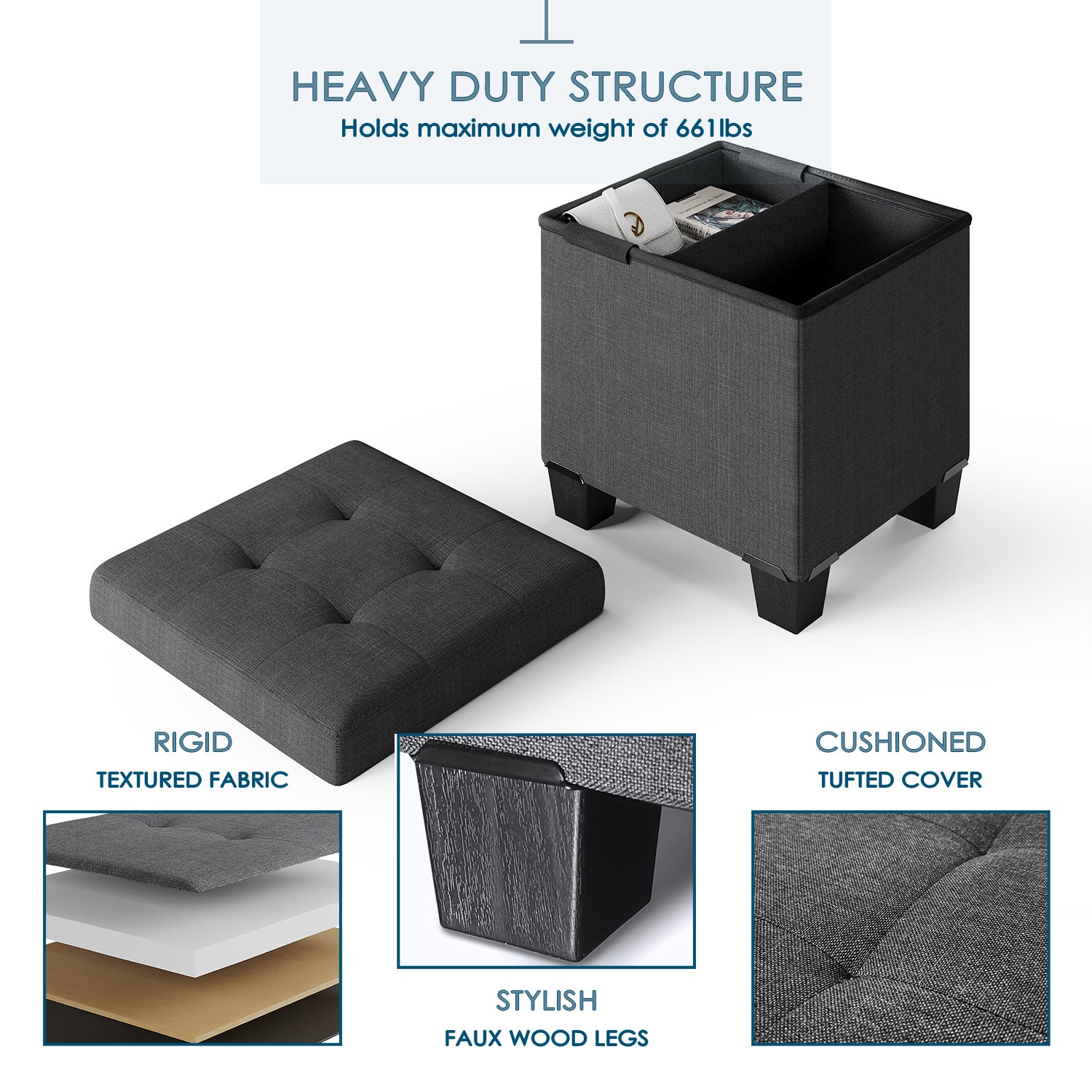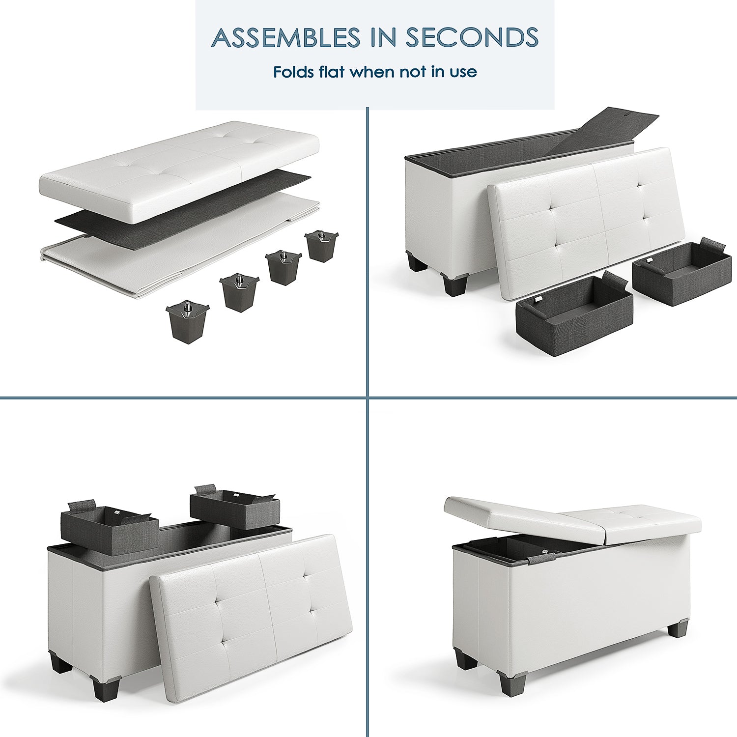 The Nestl tufted storage ottoman bench serves as a coffee table ottoman for living room or fall decor. This ottoman with storage is a perfect choice to help you make the most of your living space by acting as both a storage container and a comfertable ottoman or even a footrest. Our storage ottoman can fold flat when not in use, adapting the ottoman to suit your storage needs and when in need of additional seating. The durable fabric, gray ottoman helps organize essentials and accessories with this multipurpose storage bench. The sturdy, cushioned lid of our ottoman for bedroom storage is comfortable and supportive, with an invisible hinge design that allows it to be bent and lifted up from either side without removing the entire lid. The large ottoman space stores bulkier items like throw blankets and pillows.