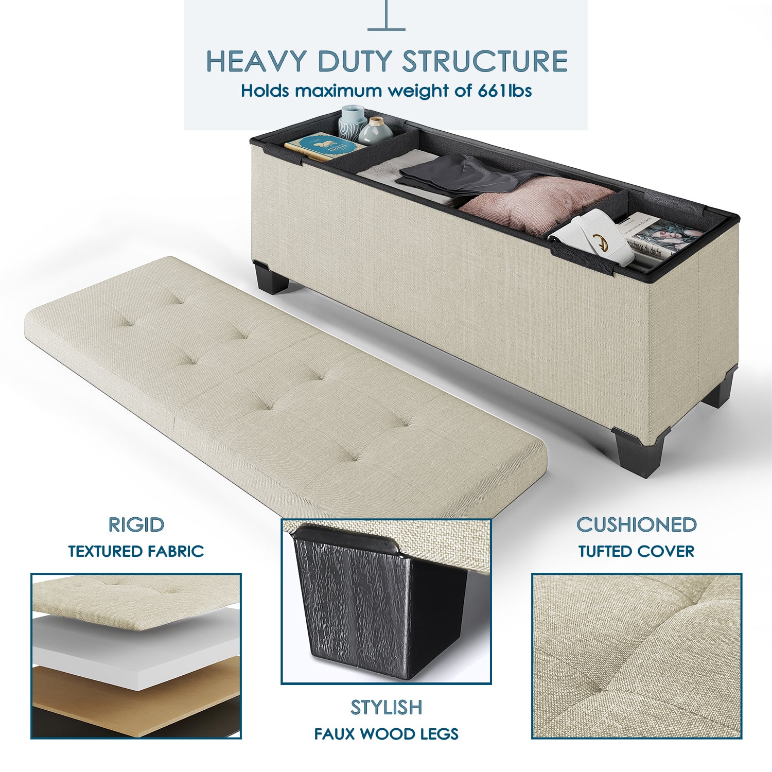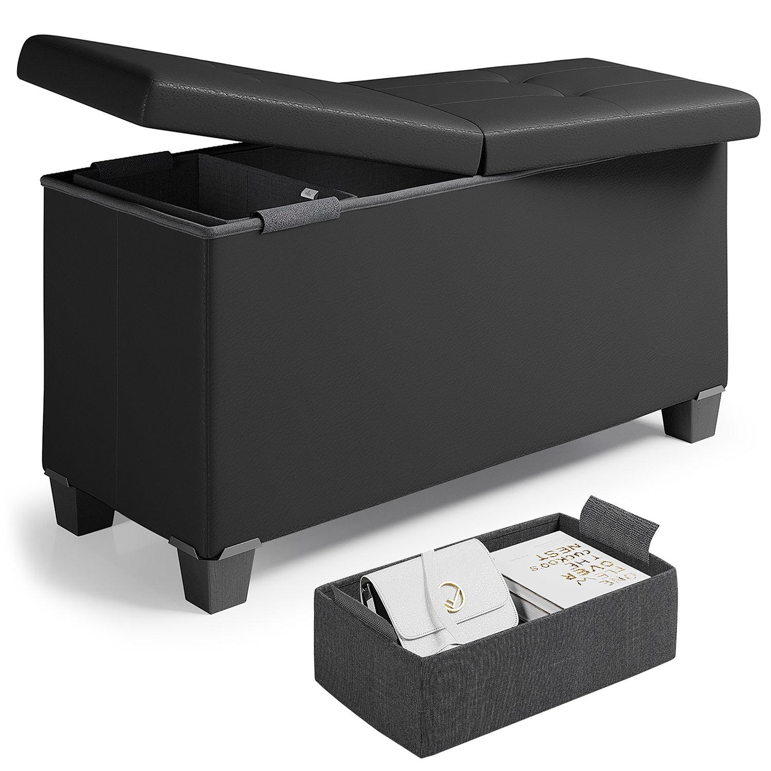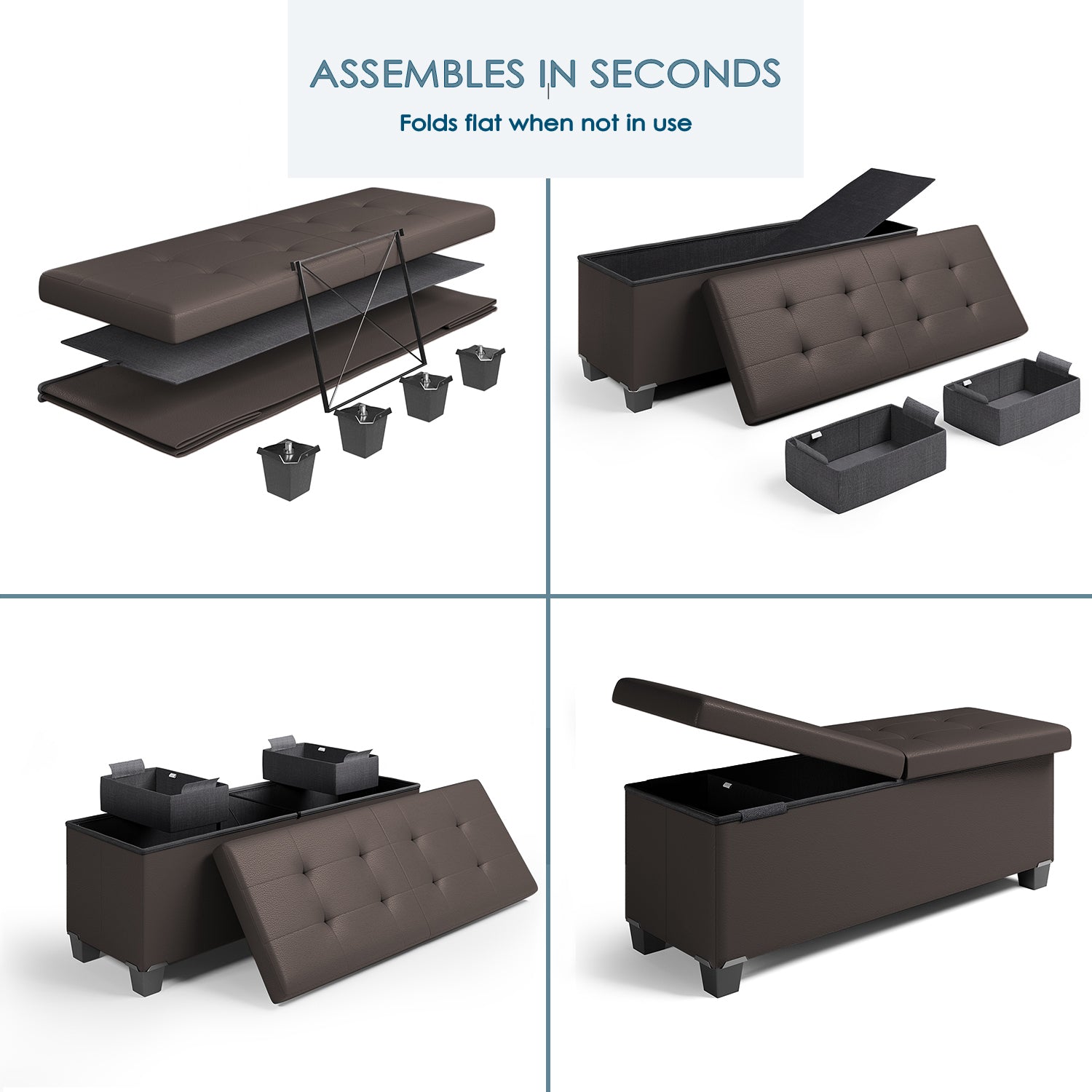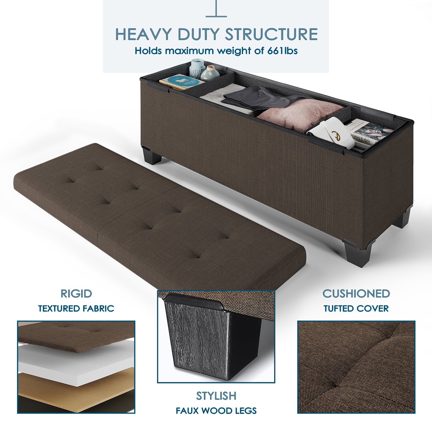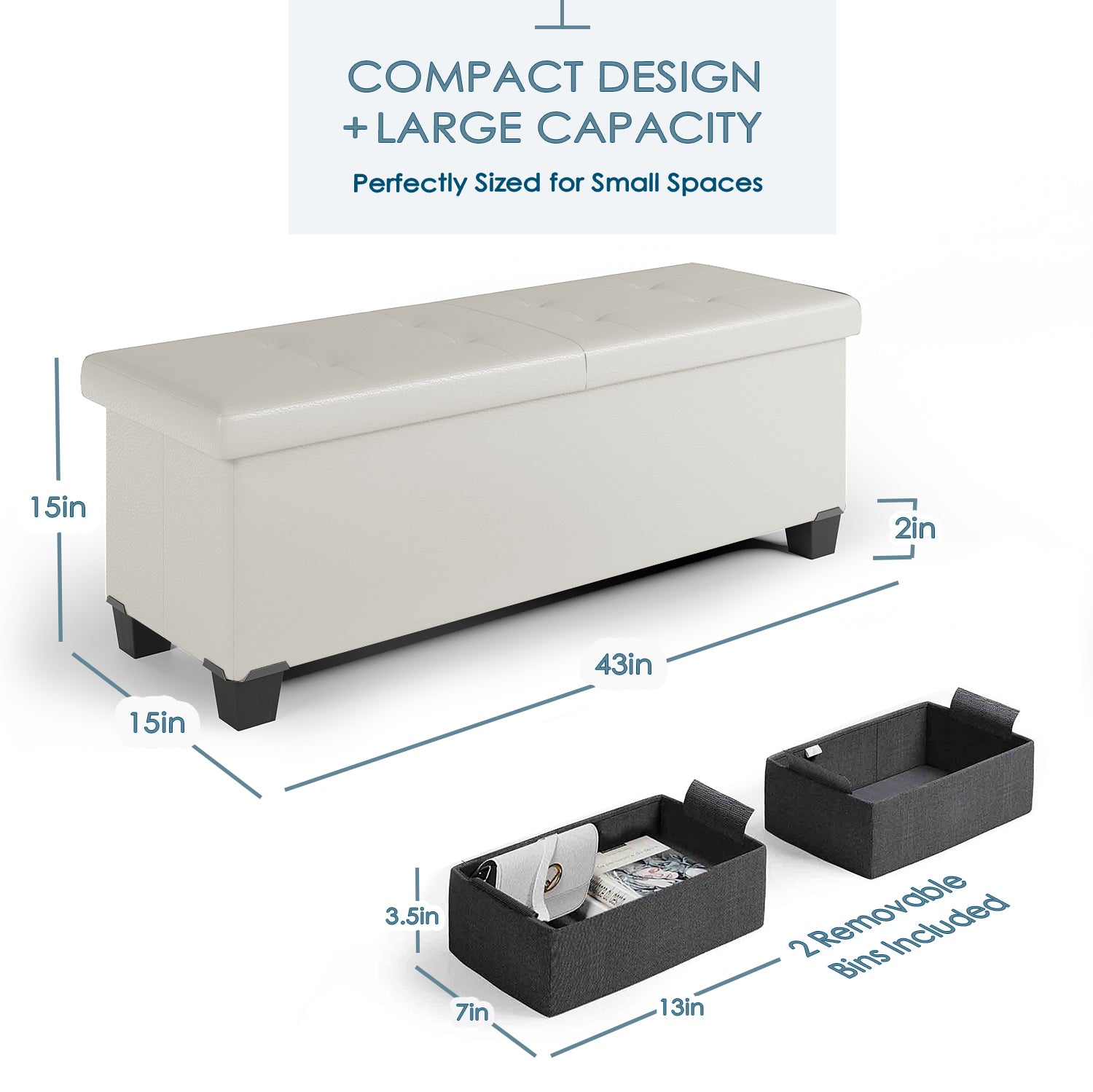 The Nestl tufted storage ottoman bench serves as a coffee table ottoman for living room or fall decor. This ottoman with storage is a perfect choice to help you make the most of your living space by acting as both a storage container and a comfertable ottoman or even a footrest. Our storage ottoman can fold flat when not in use, adapting the ottoman to suit your storage needs and when in need of additional seating. The durable fabric, gray ottoman helps organize essentials and accessories with this multipurpose storage bench. The sturdy, cushioned lid of our ottoman for bedroom storage is comfortable and supportive, with an invisible hinge design that allows it to be bent and lifted up from either side without removing the entire lid. The large ottoman space stores bulkier items like throw blankets and pillows.