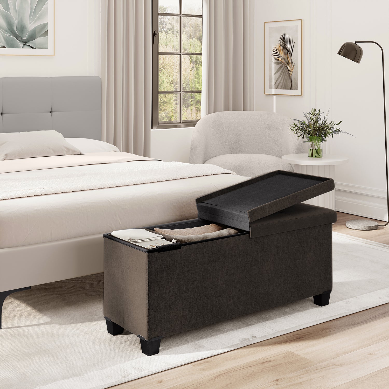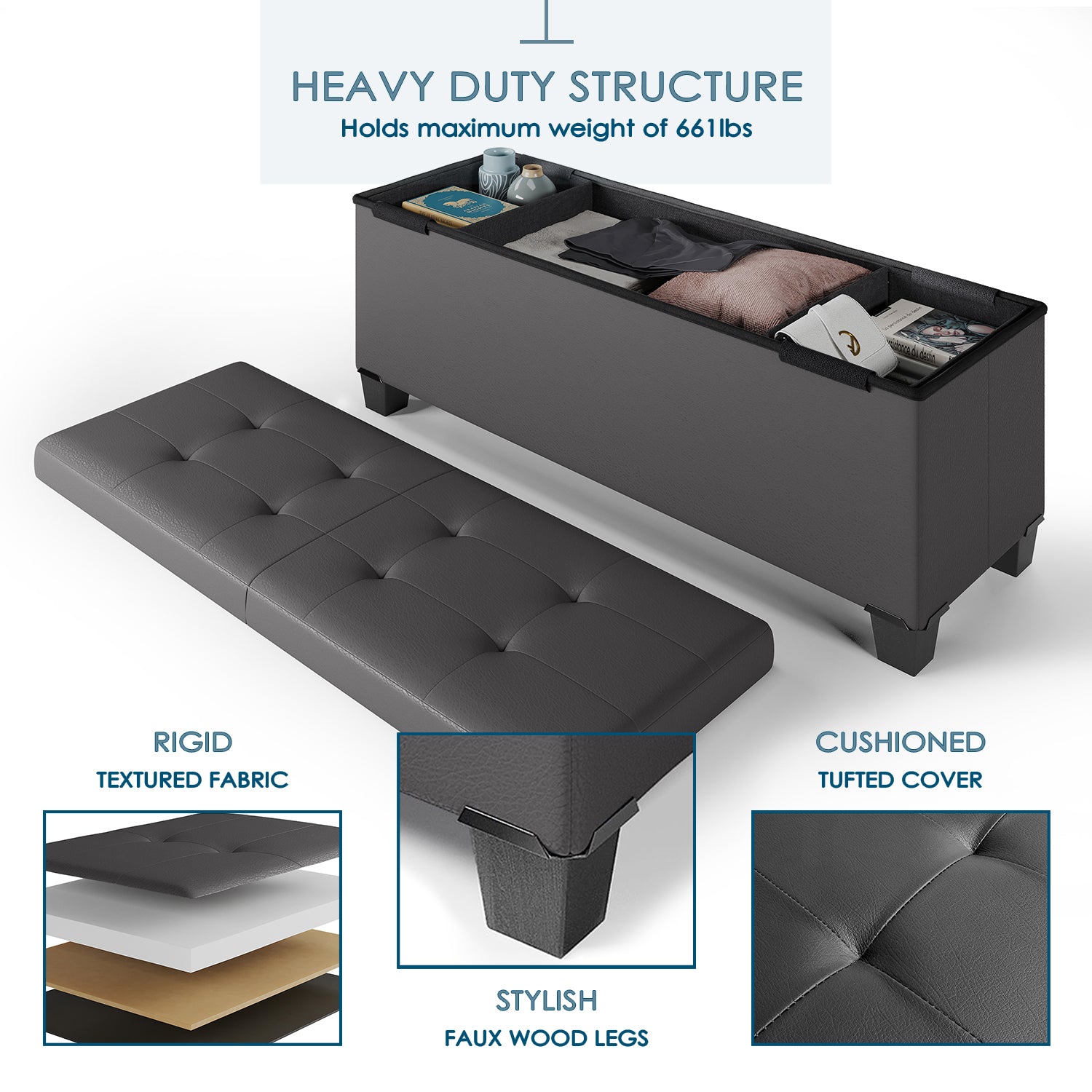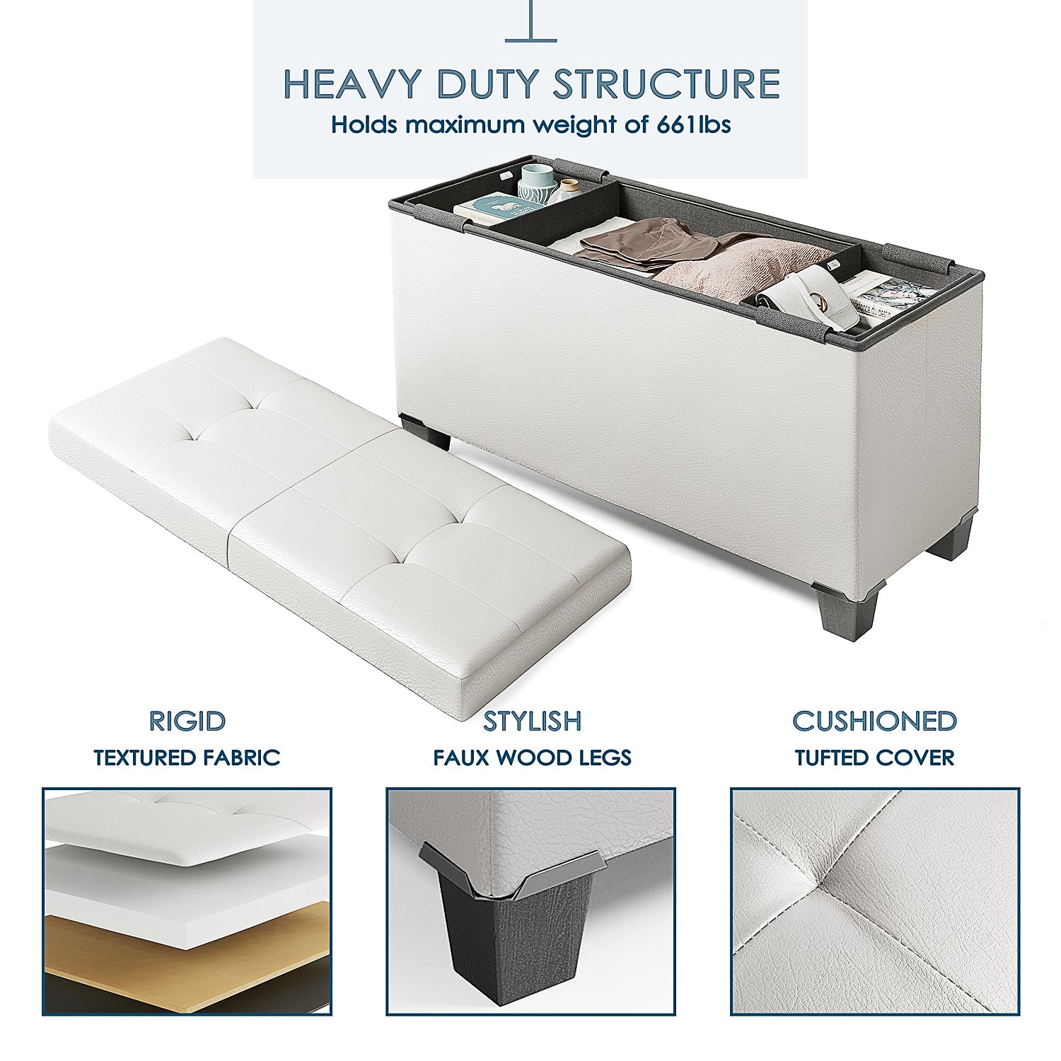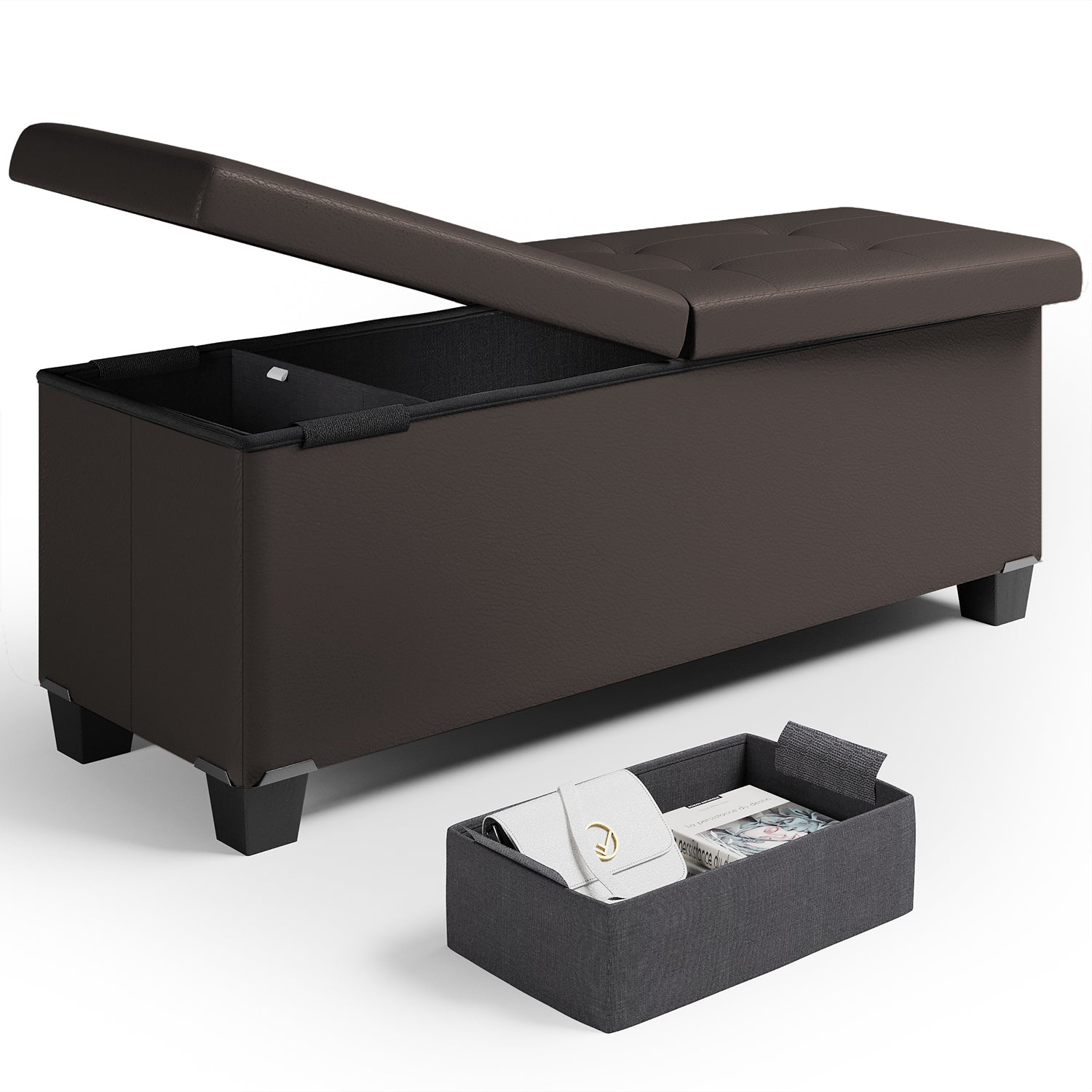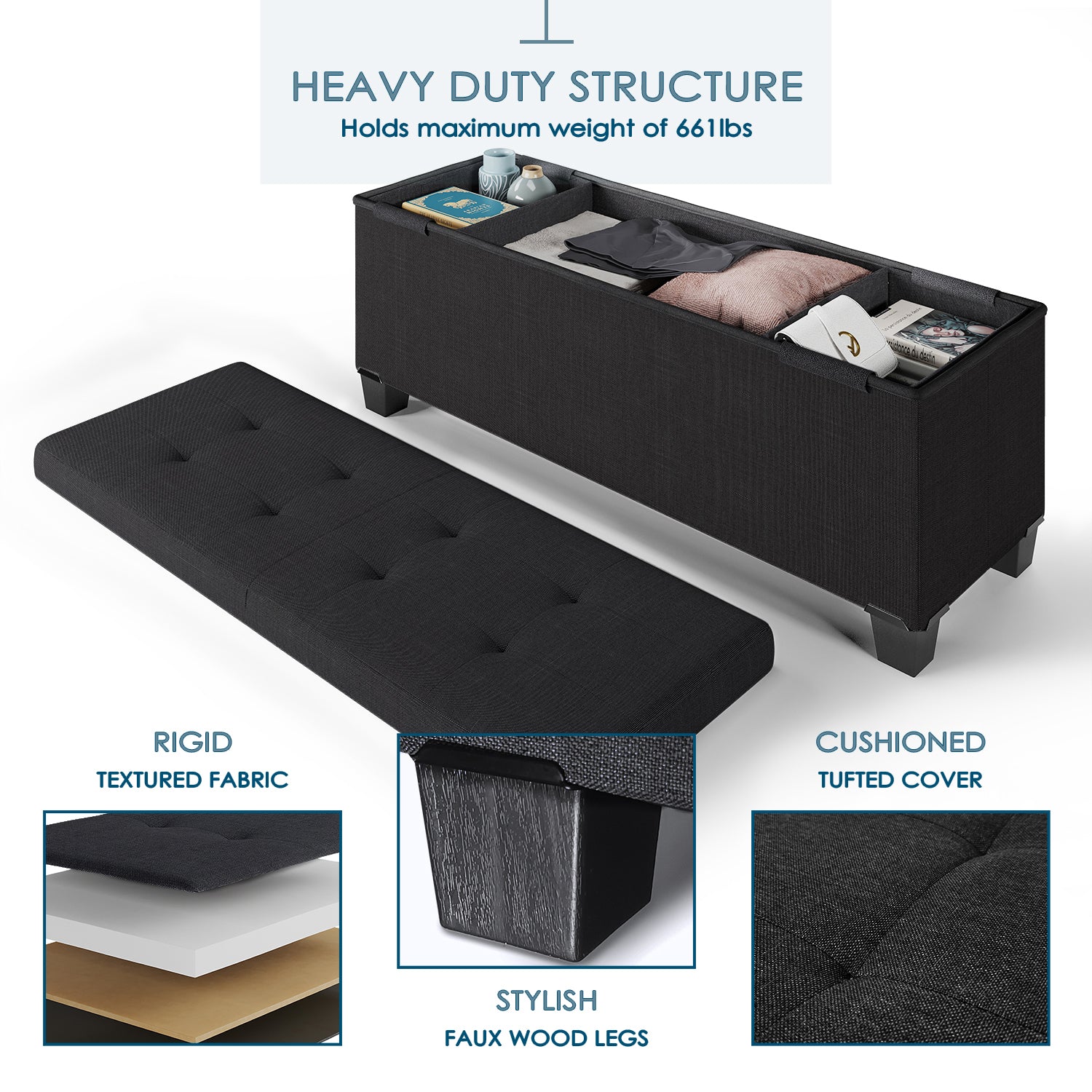 The Nestl tufted storage ottoman bench serves as a coffee table ottoman for living room or fall decor. This ottoman with storage is a perfect choice to help you make the most of your living space by acting as both a storage container and a comfertable ottoman or even a footrest. Our storage ottoman can fold flat when not in use, adapting the ottoman to suit your storage needs and when in need of additional seating. The durable fabric, gray ottoman helps organize essentials and accessories with this multipurpose storage bench. The sturdy, cushioned lid of our ottoman for bedroom storage is comfortable and supportive, with an invisible hinge design that allows it to be bent and lifted up from either side without removing the entire lid. The large ottoman space stores bulkier items like throw blankets and pillows.