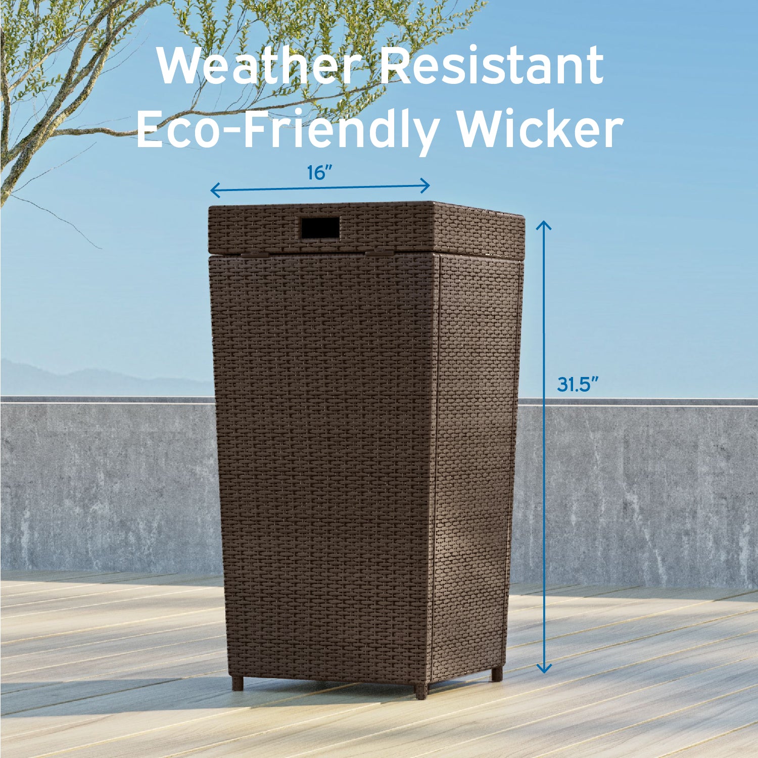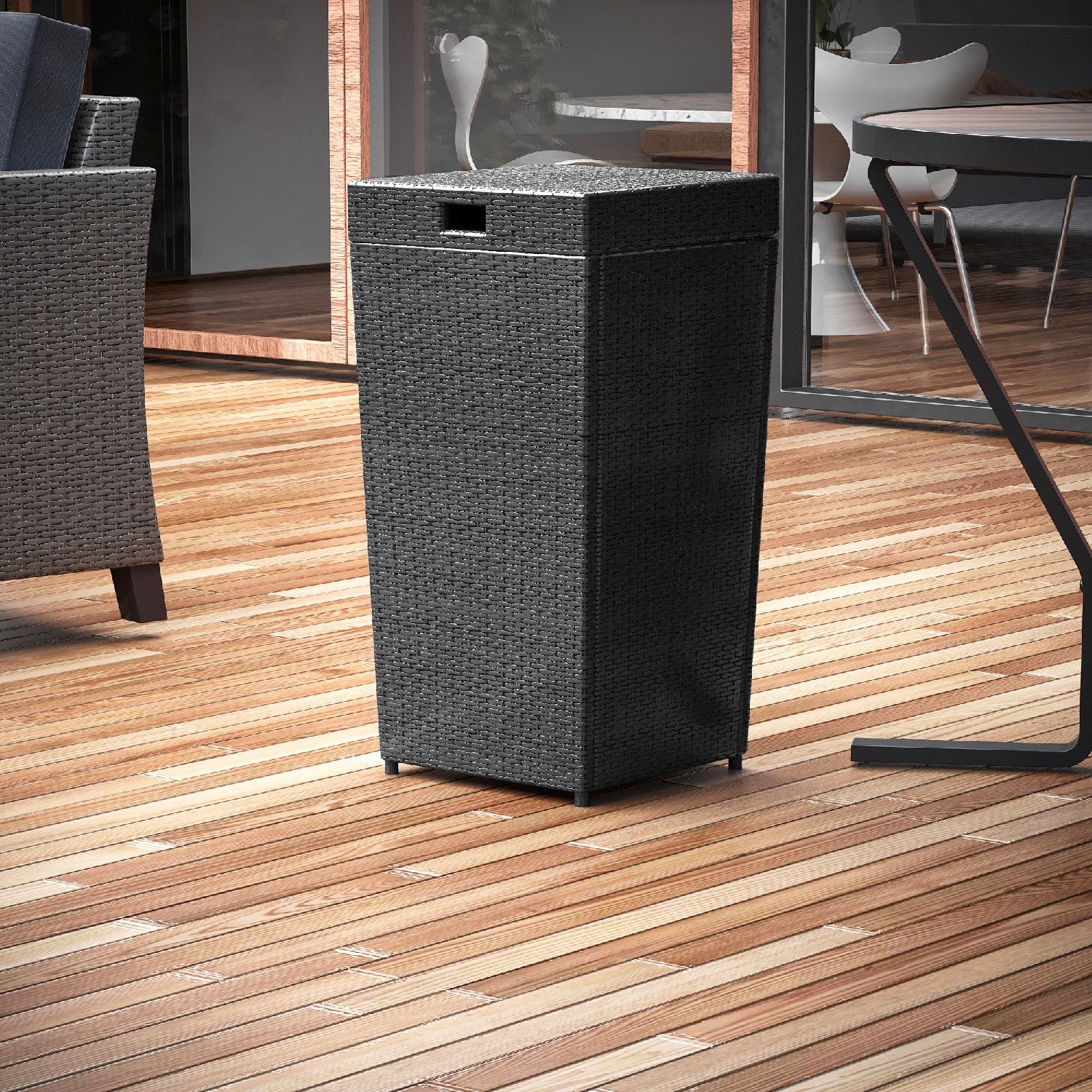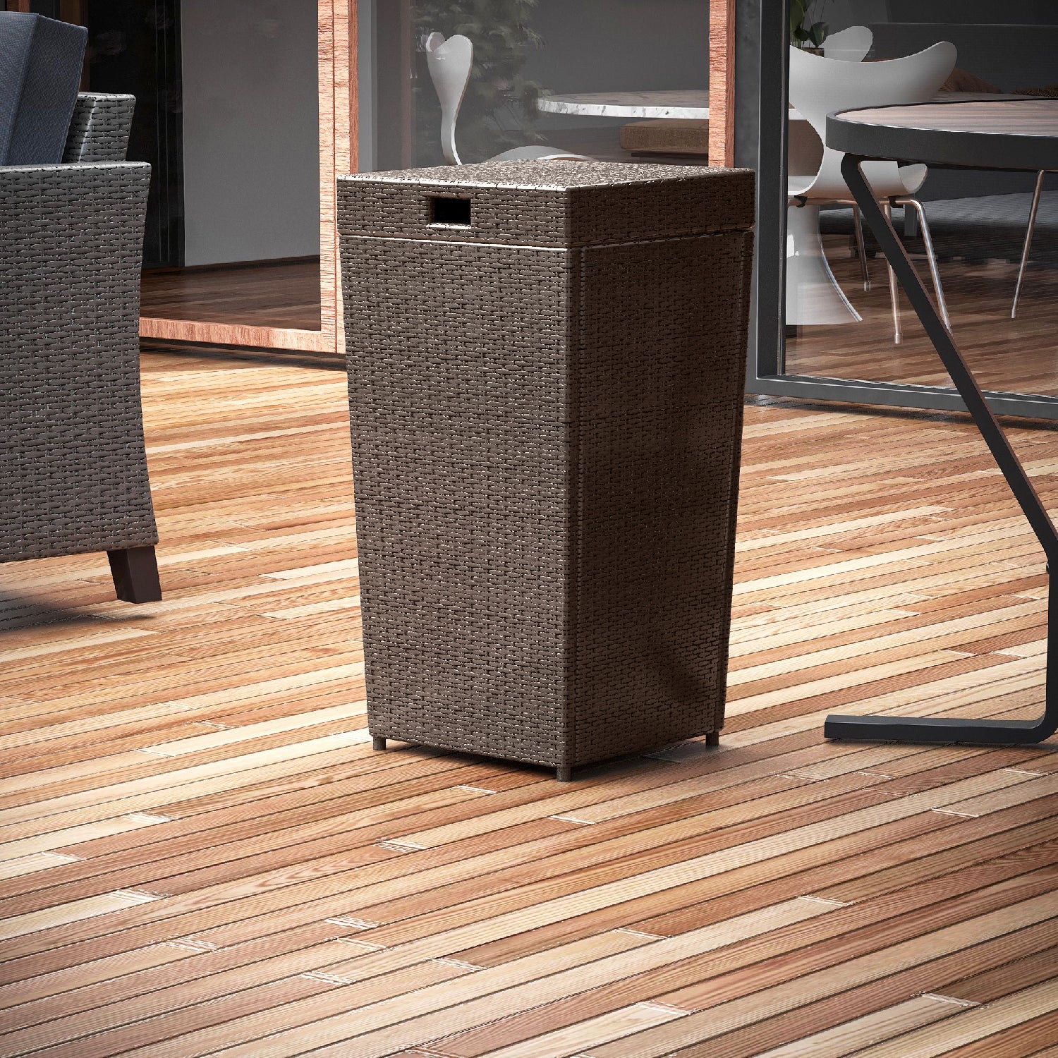 Built to Last All Season: Made with a strong steel frame and resin wicker, this outdoor trash bin is durable and weather-resistant.