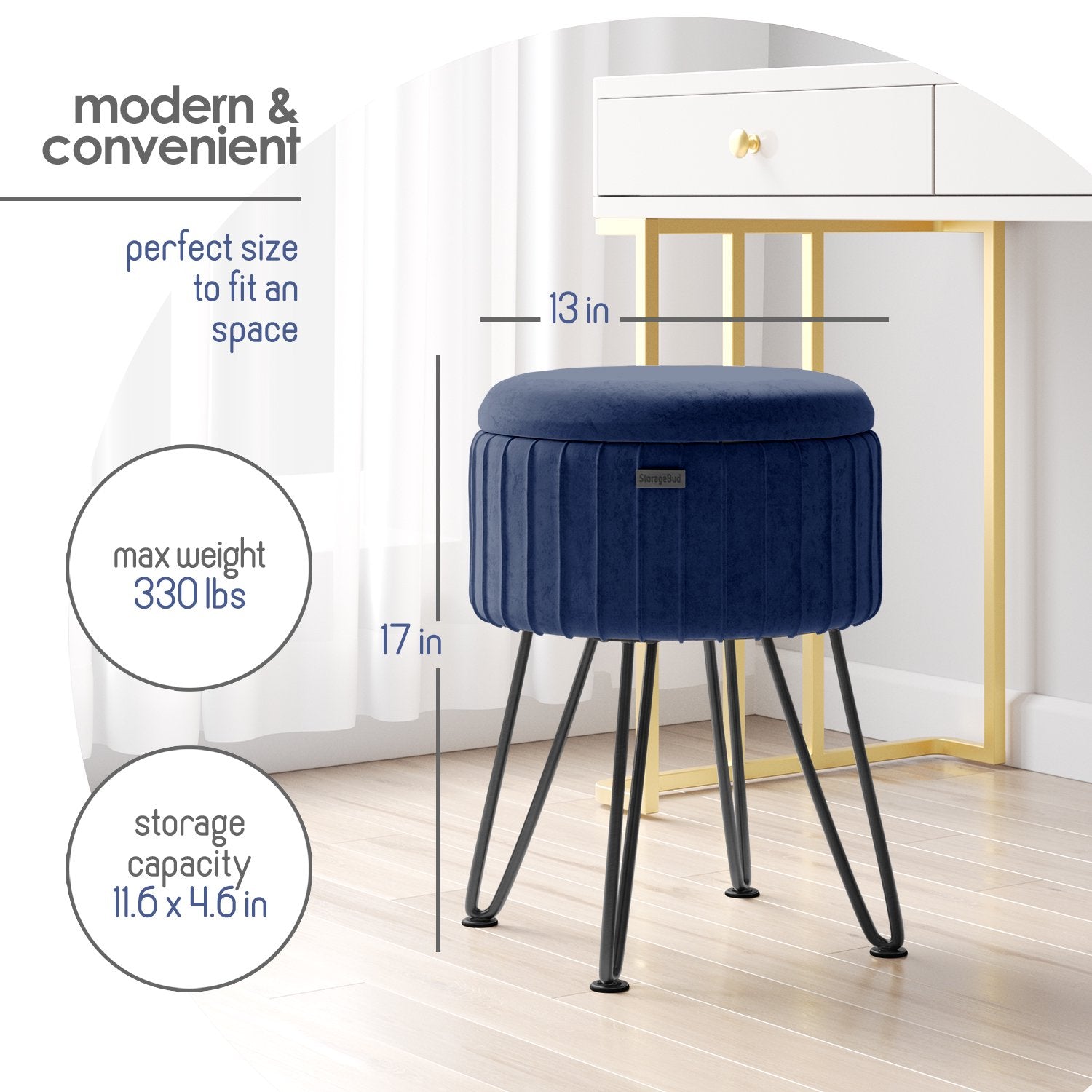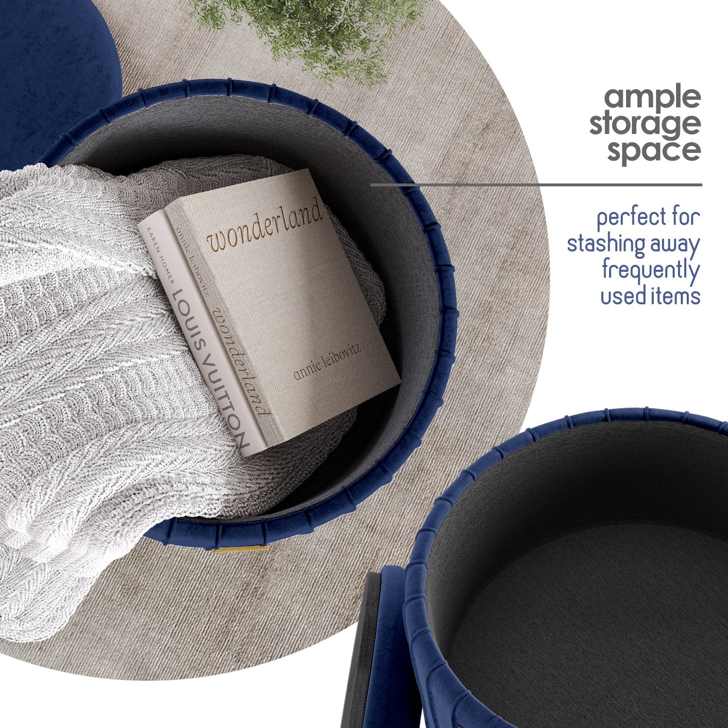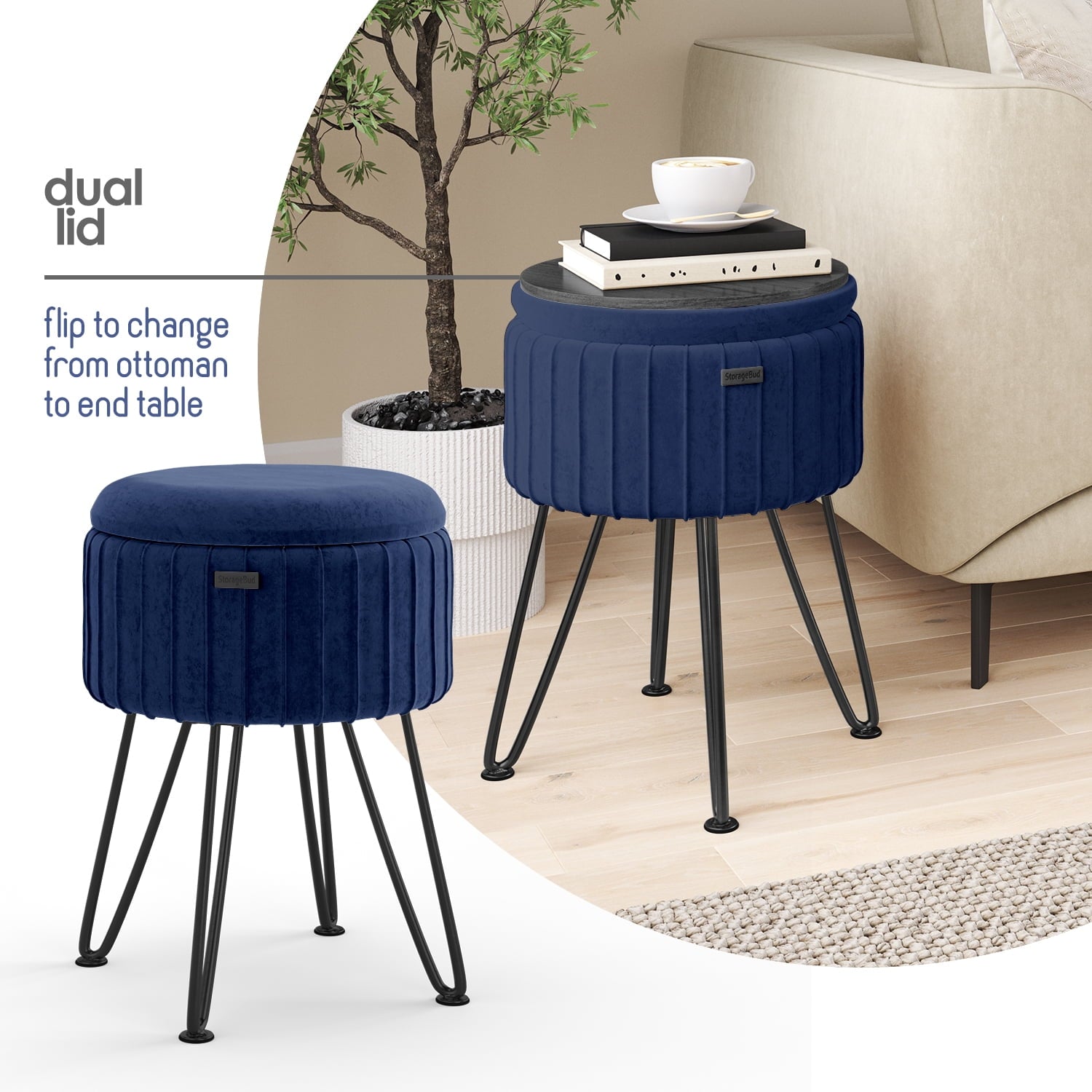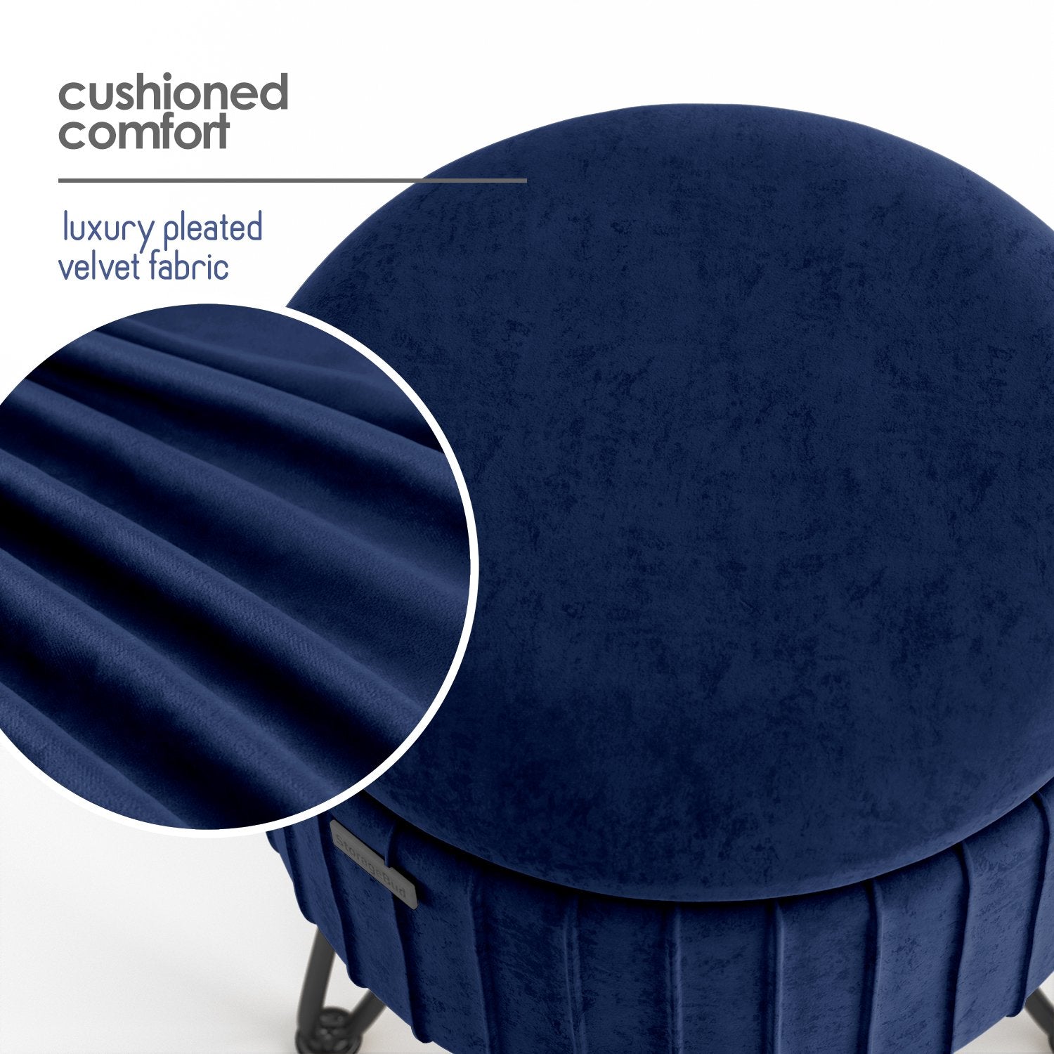Hearth & Harbor round ottoman with storage, pleated velvet storge ottoman, perfect as a foot stool ottoman mini coffee table, and even a makeup vanity stool.