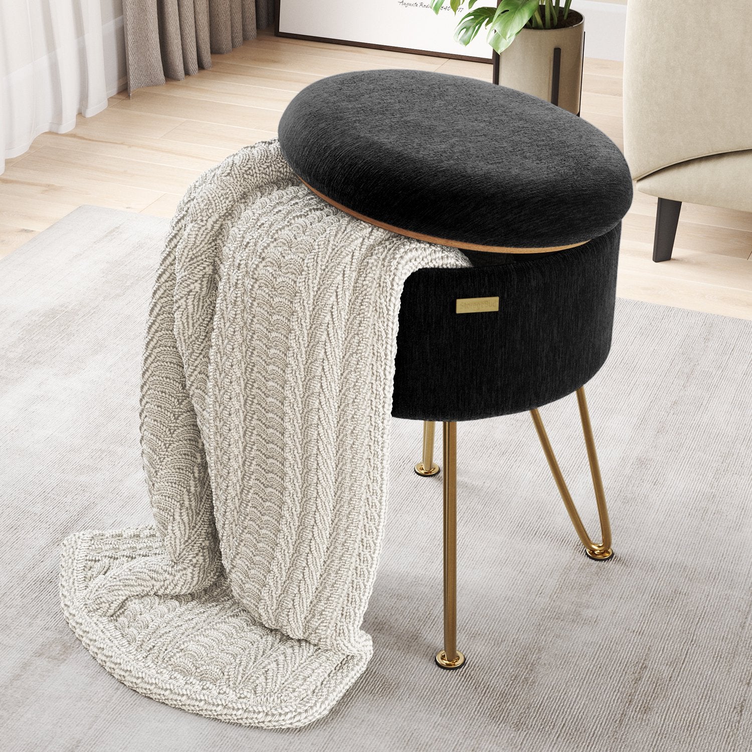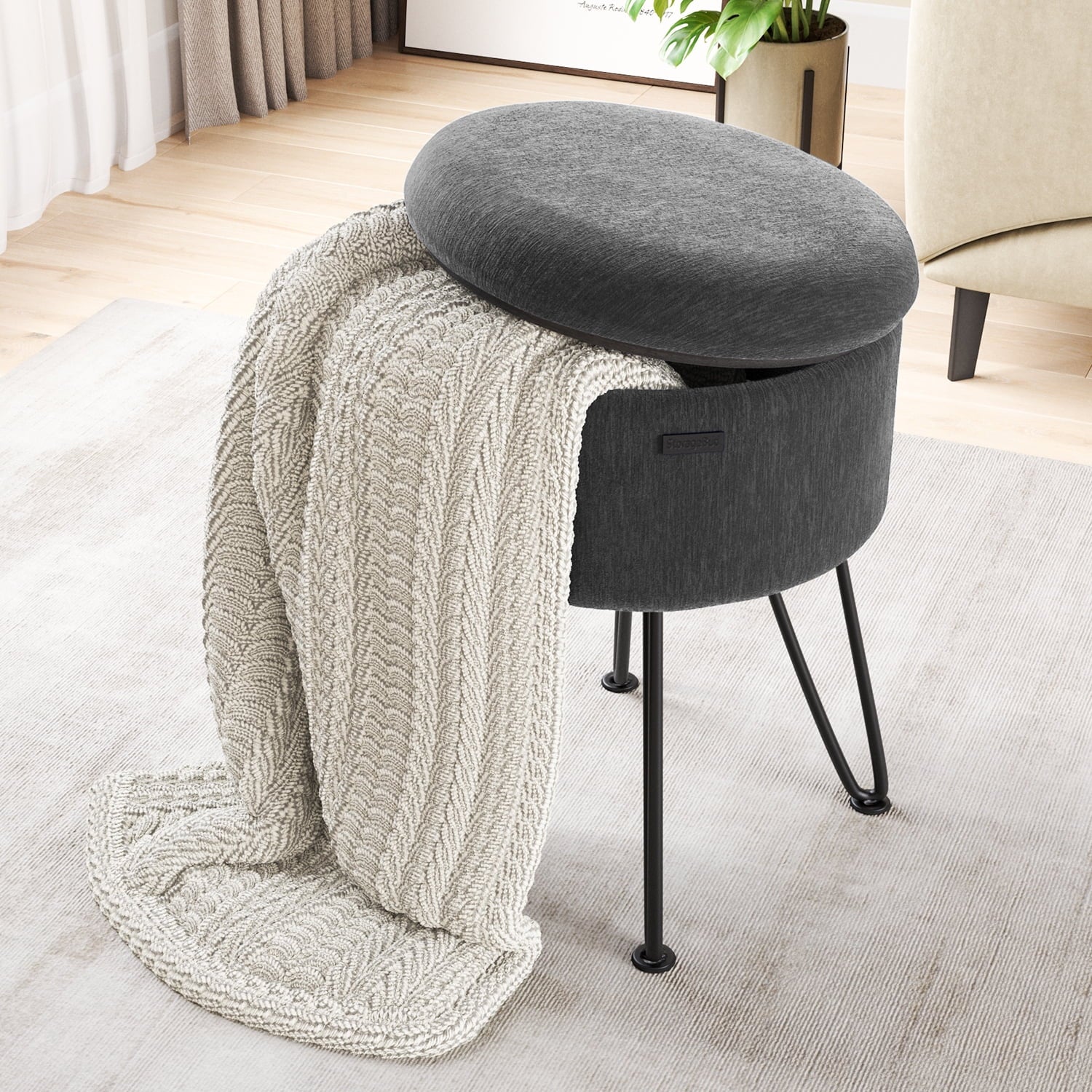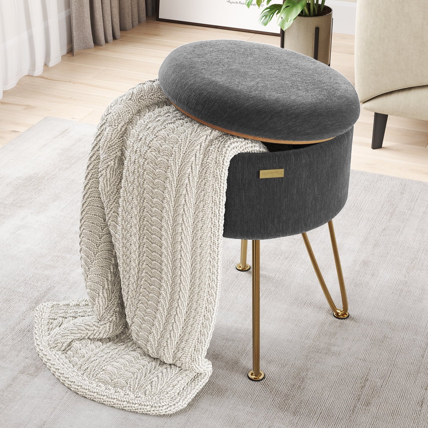Hearth & Harbor round ottoman with storage, textured velvet storge ottoman, perfect as a foot stool ottoman mini coffee table, and even a makeup vanity stool.