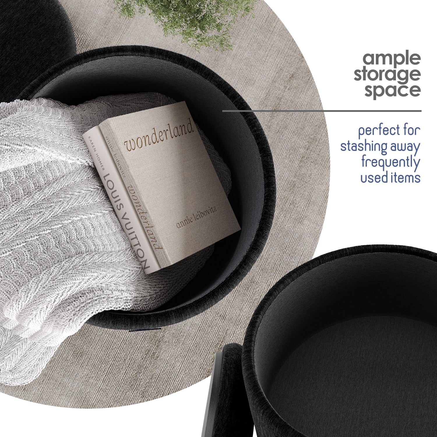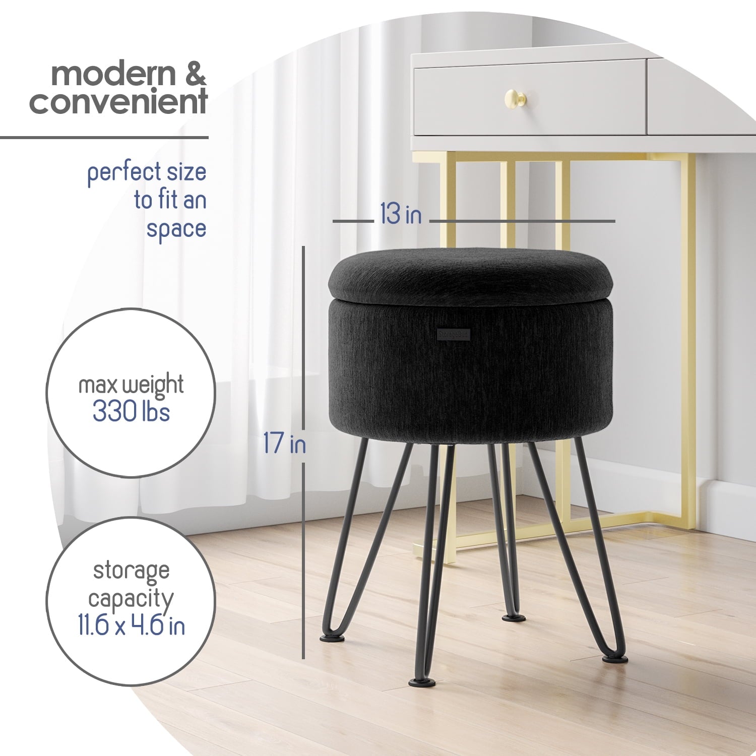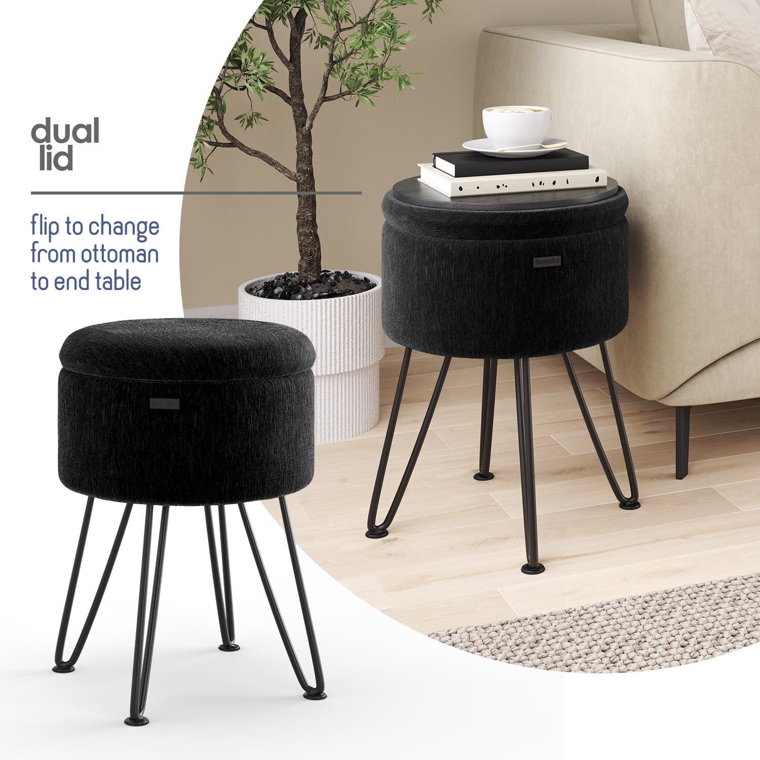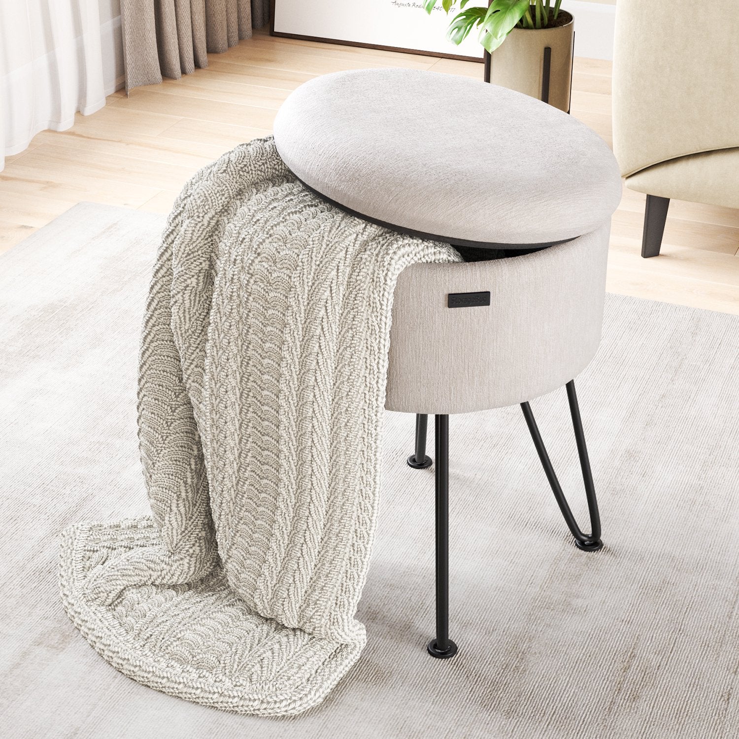 Hearth & Harbor round ottoman with storage, textured velvet storge ottoman, perfect as a foot stool ottoman mini coffee table, and even a makeup vanity stool.
