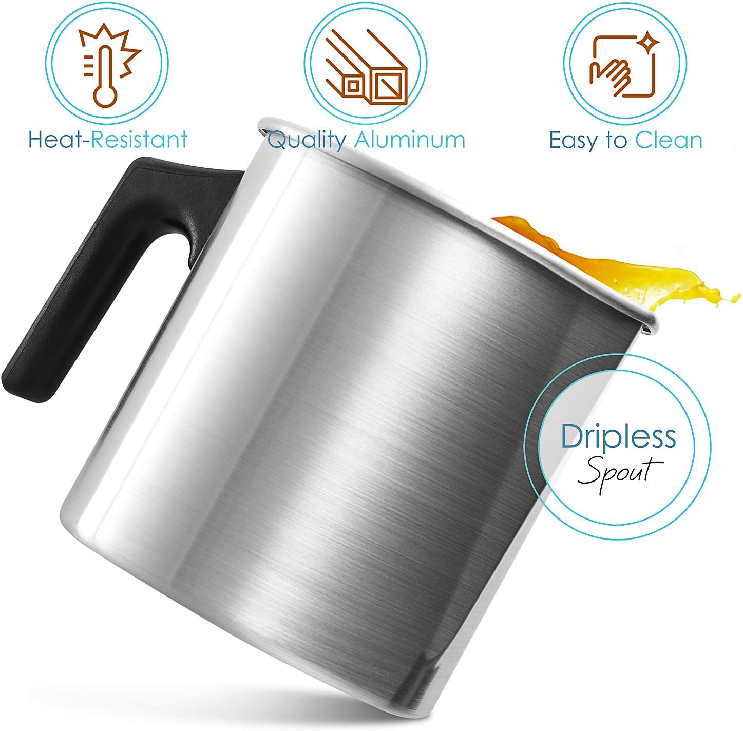 - DRIPLESS POURING SPOUT: The ergonomic handle and the spout of the lightweight wax melting pot for candle making provide optimal control and allows pouring the melted wax easily.