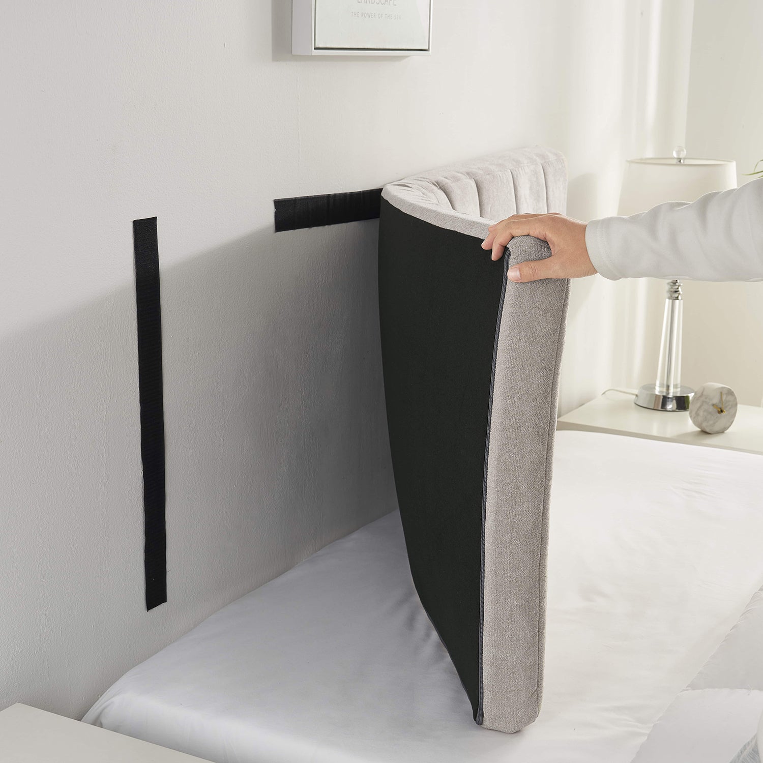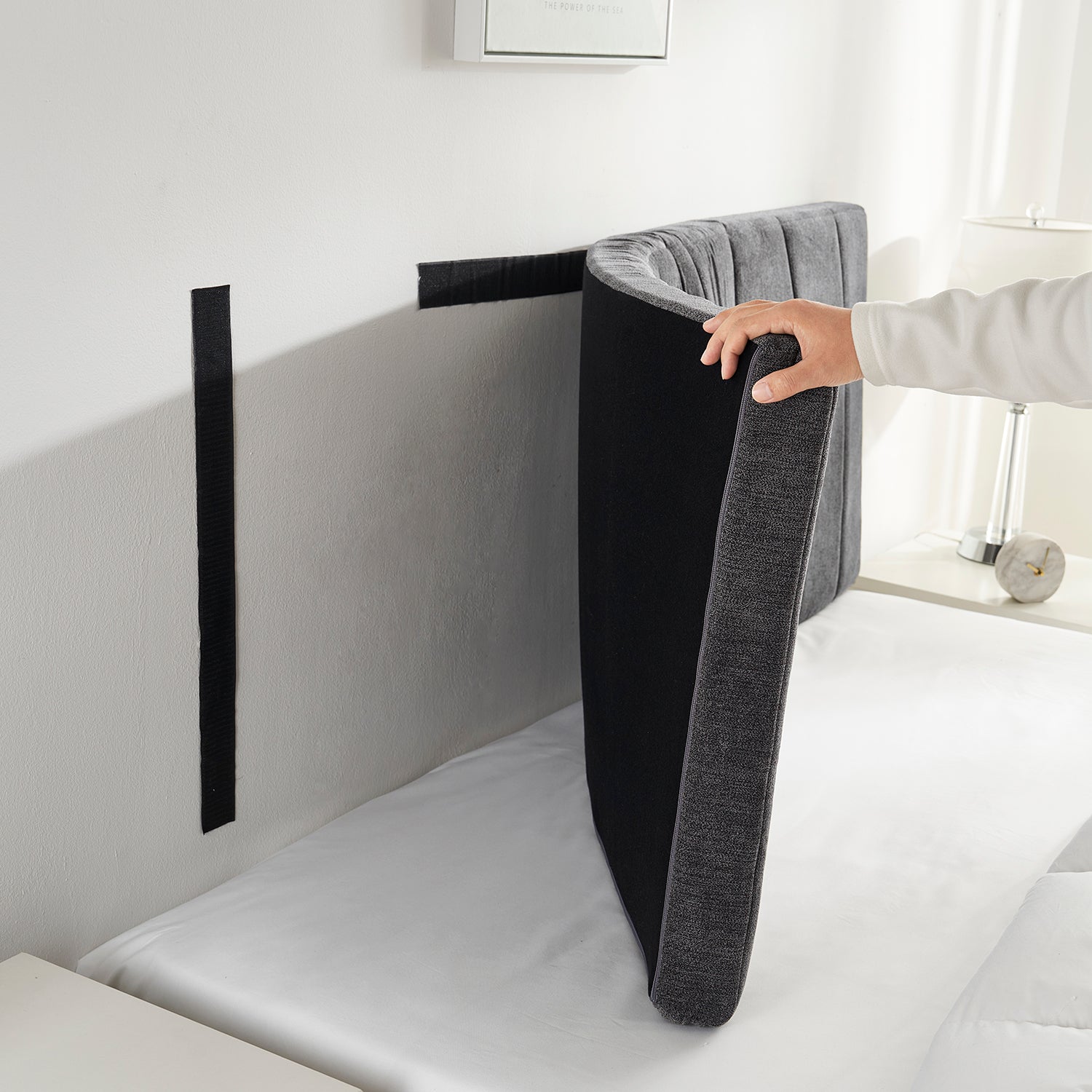 Hearth & Harbor’s revolutionary EZ Headboard is a game-changer in bedroom decor. Crafted with convenience in mind, this chic upholstered headboard attaches directly to the wall with strong, double-sided tape, so you can position it exactly where you want it. Installation is fast and easy, with no tools or hardware required. The modern, paneled design effortlessly enhances any bedroom, dorm room or guest room, and the soft yet sturdy foam fill offers both comfort and support. Priced at 30-50% less than conventional headboards, this beautiful headboard provides unbeatable value without compromising on style or quality.