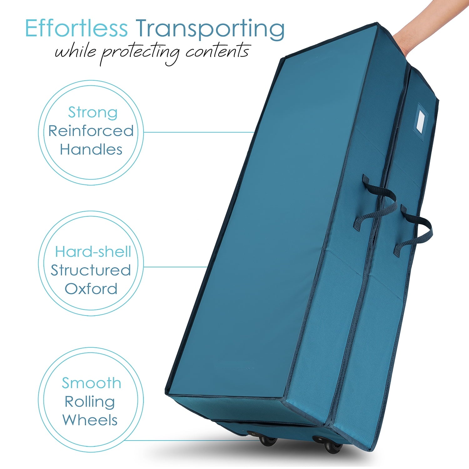 - DURABLE CONSTRUCTION - gift wrap organizer storage made of ultra-durable, 600D Oxford-polyester fabric. Body is tear, puncture, water, fade, and moisture resistant. Heavy-duty cardboard construction keeps the Xmas gift wrap organizer structured and strong.